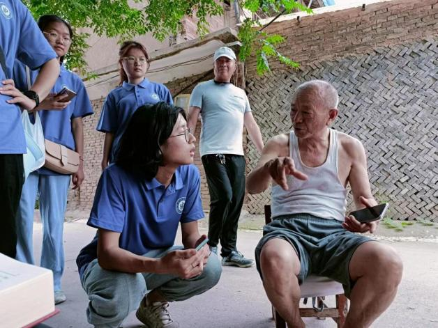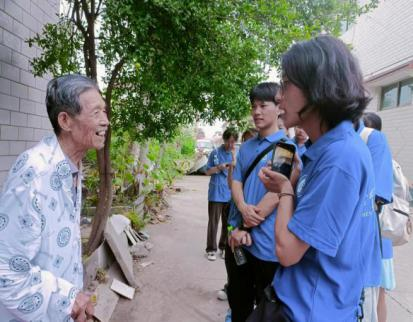 与村委挥手告别后,实践团成员们从许多村民口中得知了一位颇有名望的抗日老英雄,热情的村民积极地为实践团成员们引路,终于见到了这位老英雄。