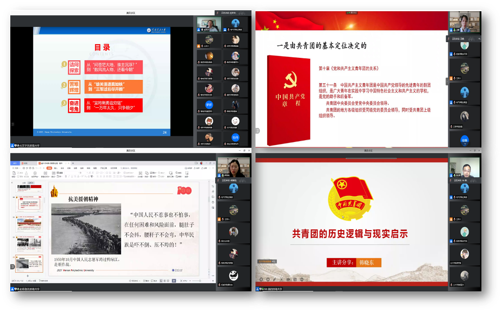 在为期2天的集中培训中,校友与社会合作办公室杜笑宇老师作了《毛泽东诗词中的党史》专题报告,全体学员更加深入了解毛泽东辉煌灿烂的奋斗人生和心路历程,再次感悟了毛泽东坚定执着的初心使命,深刻理解筚路蓝缕的中国共产党为什么“能”,更加坚定了全体学员永远跟党走的信心和决心。团中央青年讲师团成员王卫媛结合工作实际,从组织建设、班子建设、工作职责、团员发展与管理四个方面,作了《共青团基础团务知识》报告,对团干部今后工作开展具有很强的指导意义。马克思主义学院副教授胡春艳作了《奋斗百年路 启航新征程》的报告,深入解读了中国共产党百年奋斗的光辉历程、伟大成就、宝贵经验和实践启示,以及伟大建党精神的深刻内涵和时代价值,系统阐释了以史为鉴、开创未来必须牢牢把握的“九个必须”根本要求。河南省团校教研部副主任韩晓东作了《共青团的历史逻辑与现实启示》报告,重点讲述了共青团自成立近百年来,始终坚持高举团旗跟党走,围绕党的中心工作,创造性的开展符合青年特点的工作,深入阐释在新时期强化党对共青团的领导,进一步夯实基层组织,增强工作时效性,不断提升对团员青年的凝聚力、组织力、号召力。