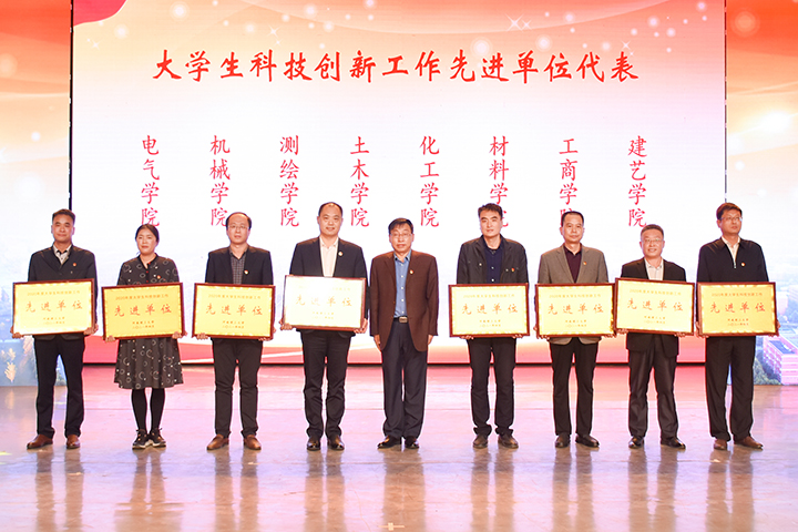 校纪委书记陈自录为获得大学生科技创新工作先进单位代表颁奖