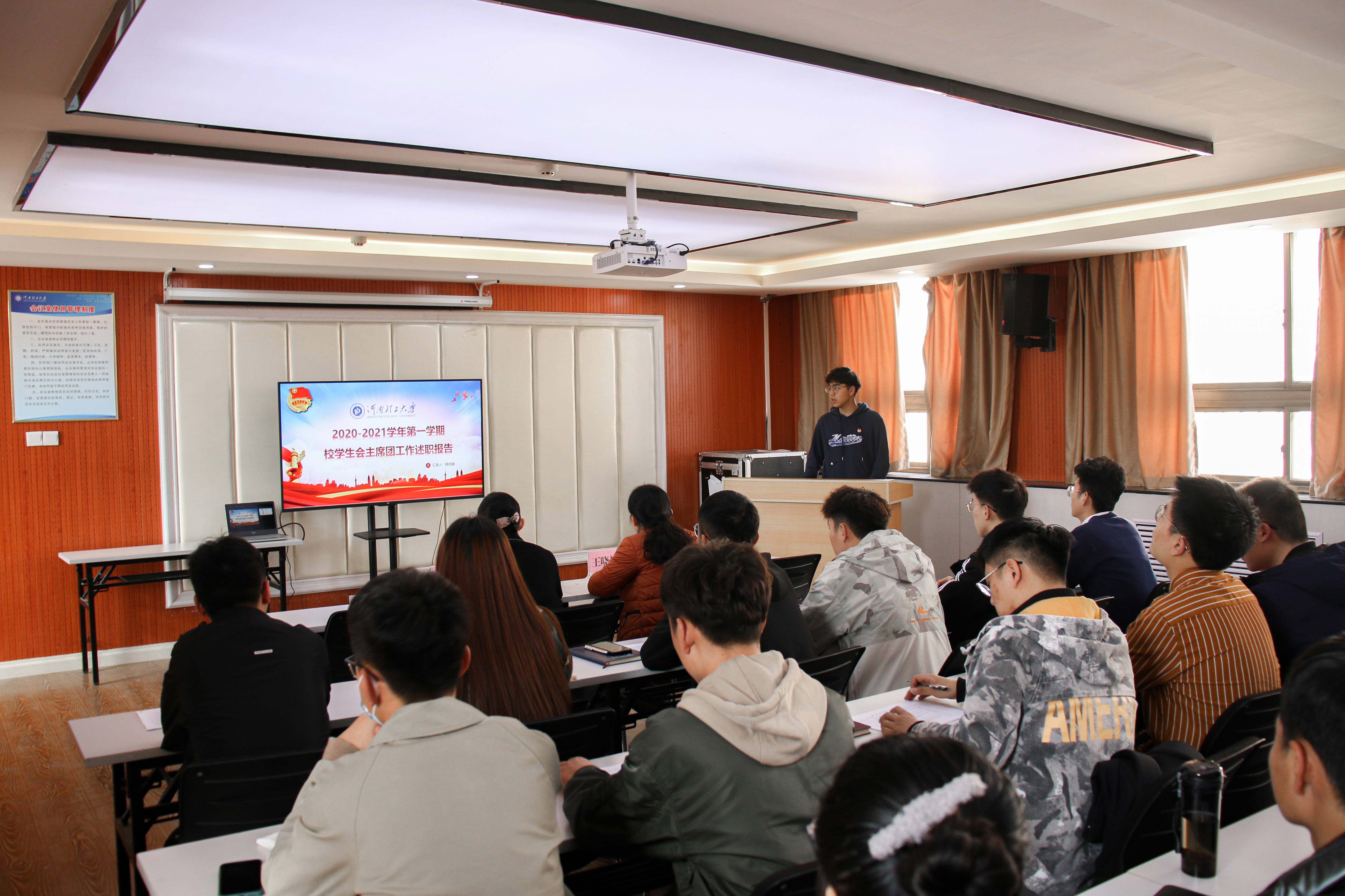 为进一步深化学生会改革,明晰学生会组织基本定位和职能,真正发挥好学生干部的桥梁纽带作用,3月23日下午,校学生会2020-2021学年第一学期学生会述职评议会在大学生活动中心401室召开。校团委副书记、学生会秘书长王明娅、述职评议小组全体成员、校学生会主席团成员以及各部门负责人参加会议。