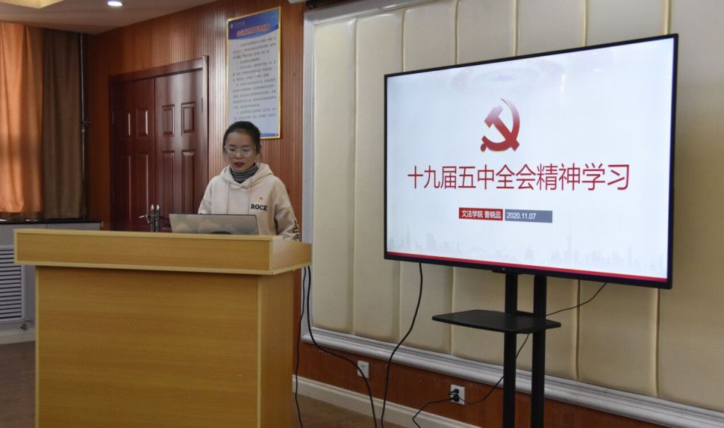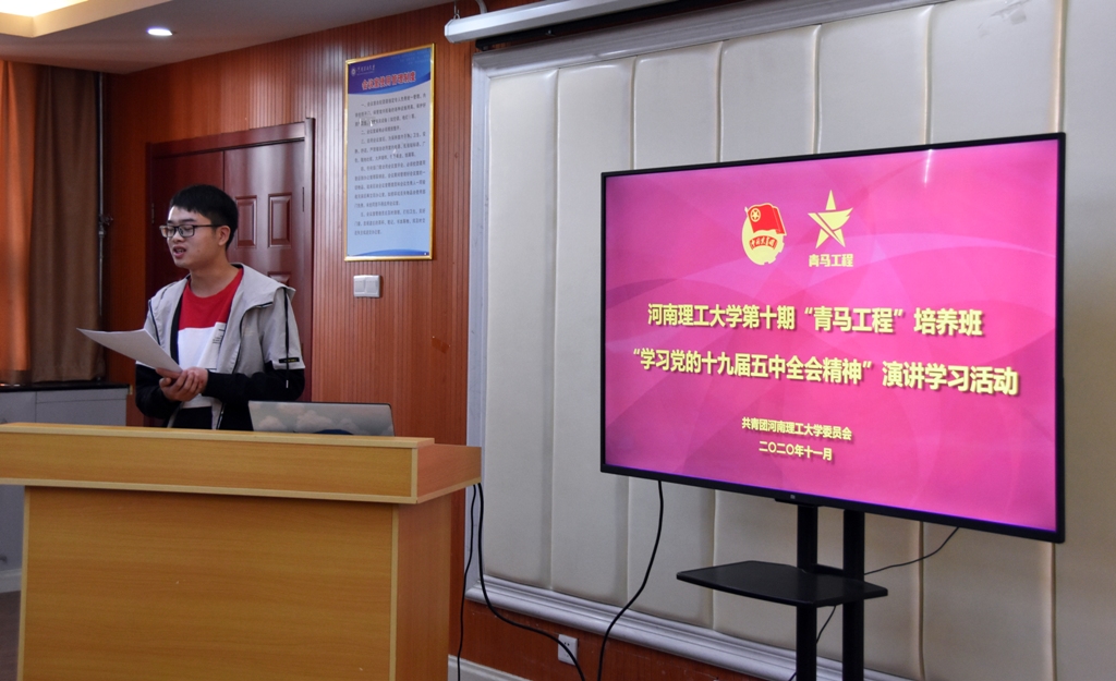 11月21日下午,我校第十期“青马工程”培养班在南校区大学生活动中心开展了“学习党的第十九届五中全会精神”主题演讲活动。第十期“青马工程”培养班全体成员参加了本次活动。
