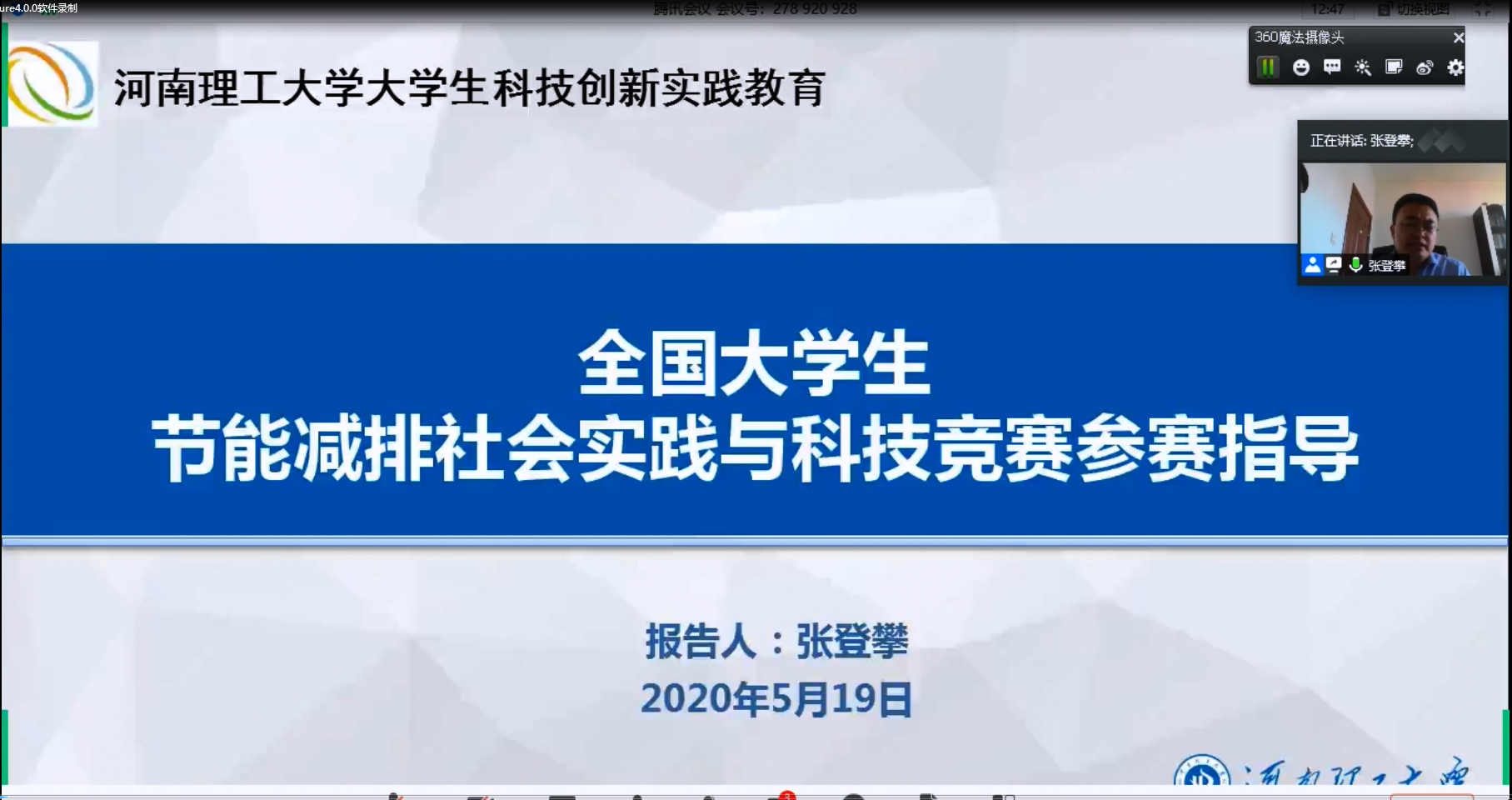 为进一步提升我校大学生课外科技竞赛参赛团队参赛作品质量和水平,选拔优秀作品参加全国第十三届大学生节能减排竞赛和2020年“创青春”河南省大学生创业大赛,更好地推动我校大学生课外科技创新工作的开展,近日,校团委、校学生会通过网络联合举办了系列大学生课外科技竞赛直播培训。培训分别邀请了机械学院张登攀老师、财经学院王鑫老师和工商管理学院王春娅老师作相关竞赛培训和作品分析指导。各学院参赛团队百余名同学参加了相关竞赛培训。