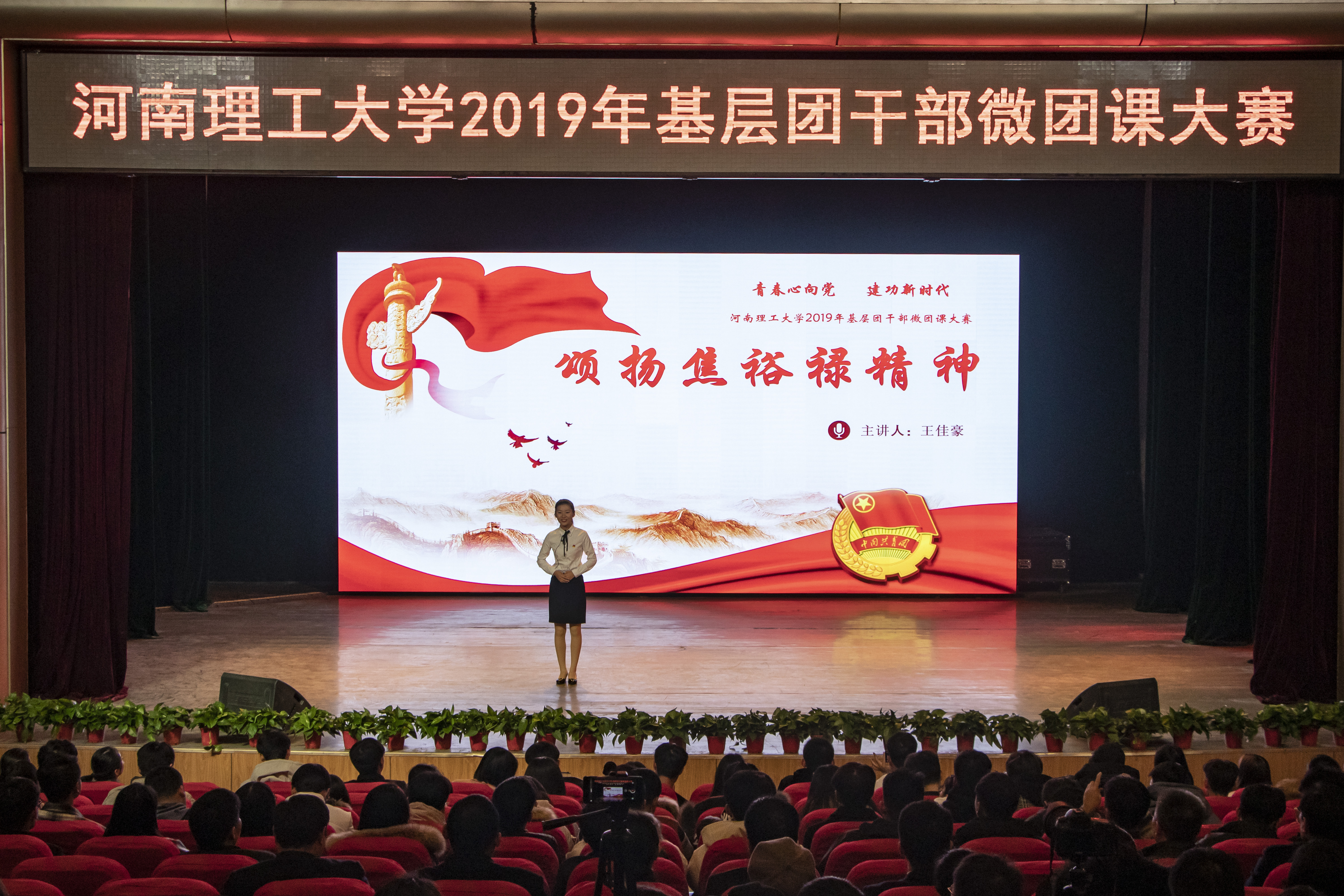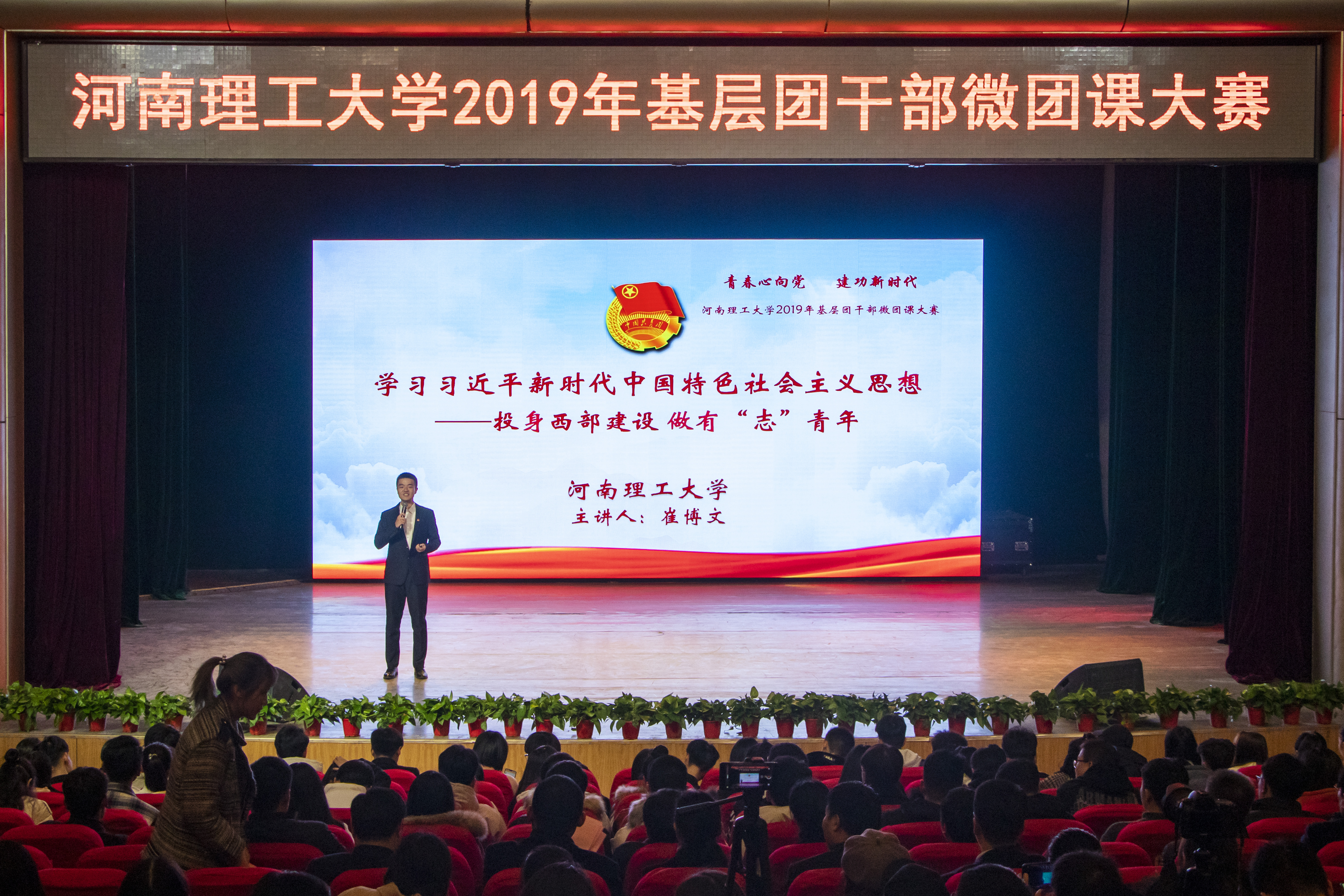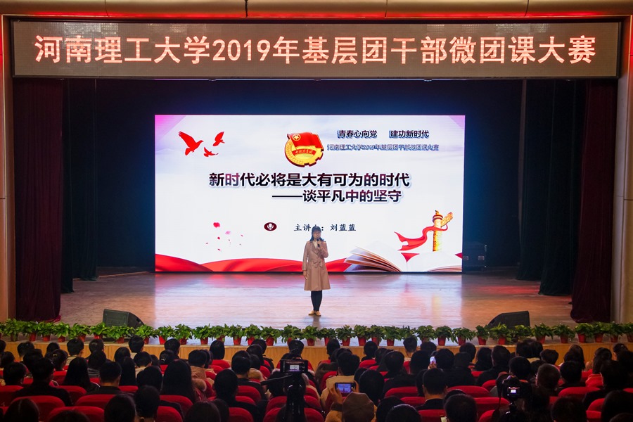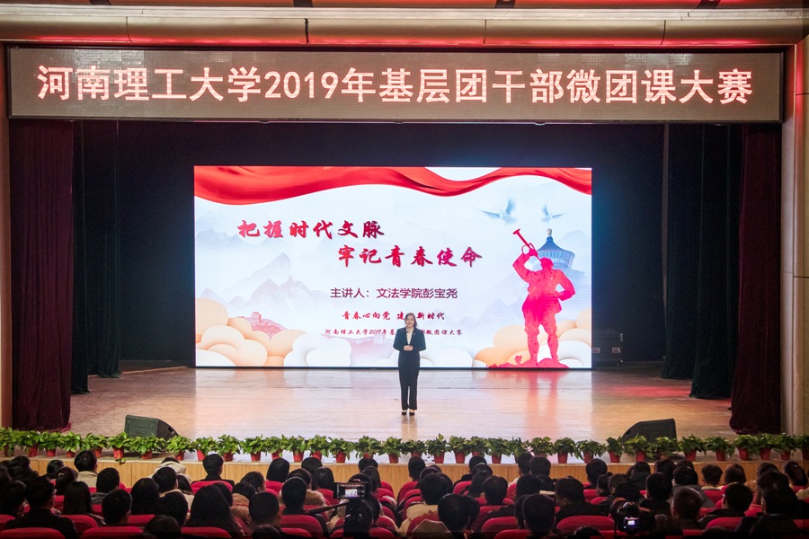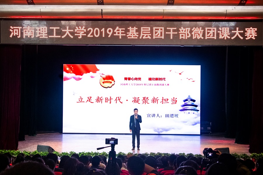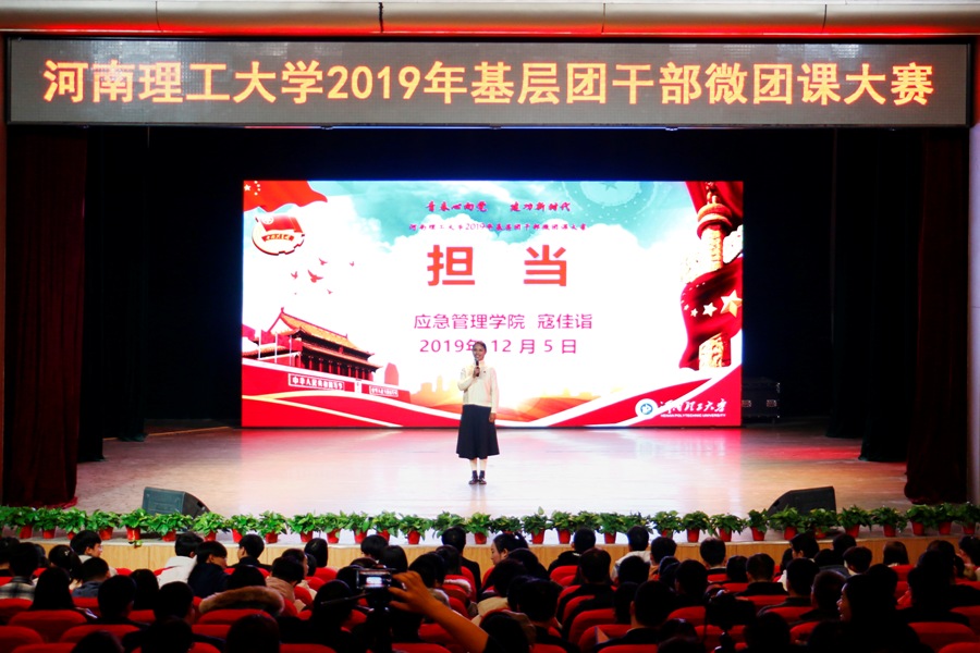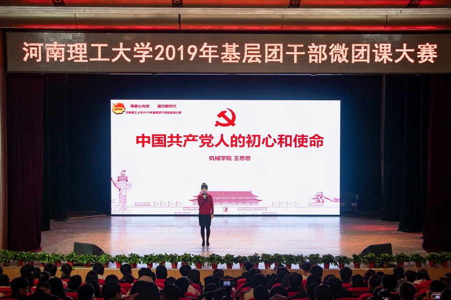 为深入学习贯彻习近平新时代中国特色社会主义思想和党的十九大精神,贯彻落实习近平总书记7.2重要讲话精神和团的十八大精神,扎实推进共青团改革,强化团的基层建设,12月5日下午,我校“青春心向党·建功新时代”2019年基层团干部微团课大赛决赛在南校区小礼堂举行。校党委副书记安士伟出席比赛,组织部、宣传部、学生处、校团委、马克思主义学院相关负责人担任评委,全校800余名师生共同观摩了大赛。