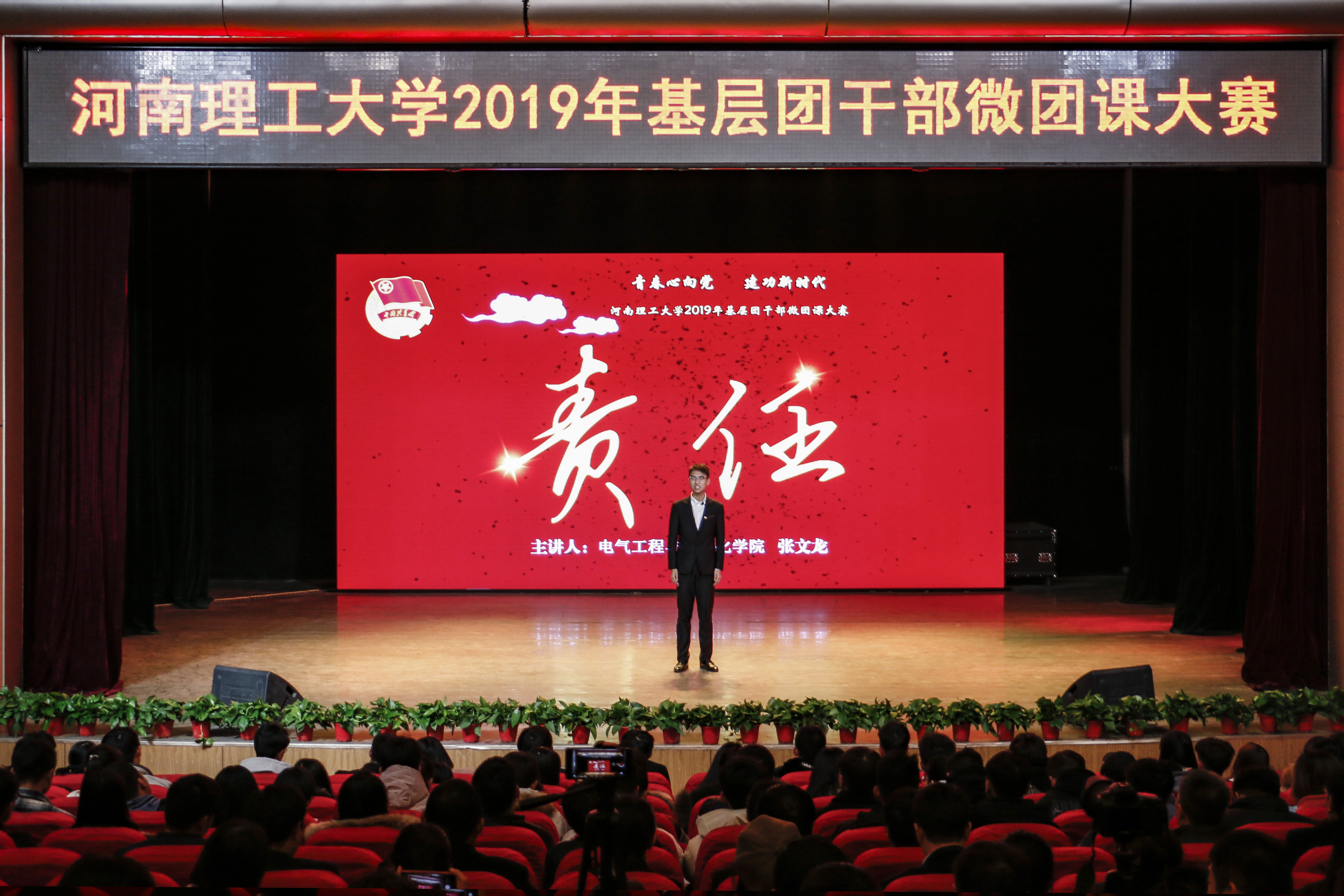 大赛开始前,全体人员共唱共青团团歌《光荣啊,中国共青团》。比赛中,各位参赛选手仪态端庄、举止得体、精神饱满、语言流畅,选手们有的结合红色故事,讲解党的光荣历史和传统;有的结合国情省情校情,弘扬五四精神,思考新时代青年的责任和担当;有的围绕支教志愿服务,宣扬青年学子的奉献精神;有的围绕英雄楷模,探讨人生的理想信念和价值追求。选手们激情陈词、声情并茂、各具特色,充分展示了我校基层团干部的青春风采,为我们呈现了一场精彩的视觉盛宴。最终,经过评委评分,文法学院刘蓝蓝获得教师组一等奖,土木学院田道坡、财经学院张涵获得二等奖,物电学院霍静娟、机械学院王思思、计算机学院岳磊获得三等奖。电气学院张文龙获得学生组一等奖,物电学院王佳豪、能源学院崔博文获得二等奖,应急学院寇佳诣、音乐学院陈晨、文法学院彭宝尧获得三等奖。此外,电气学院、计算机学院、物电学院和文法学院获得本次大赛优秀组织奖。