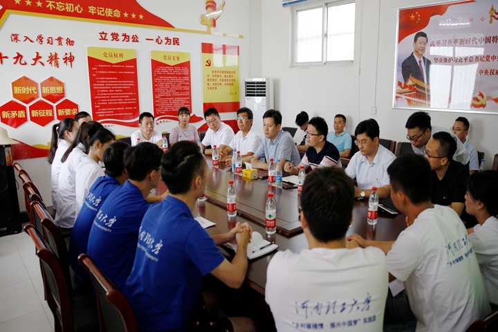 7月15日上午,团省委副书记王笃波前往焦作市博爱县清化镇街道南朱营村调研我校暑期“三下乡”社会实践活动,团省委学校部副部长张艳斌、校团委书记支光辉、党委宣传部、教务处、学生处、科技处、研究生处等单位负责同志陪同调研。