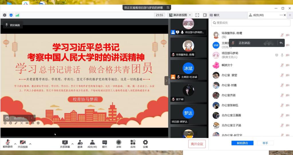 4月26日下午,校团委全体工作人员、校级各学生组织、第九期“青马工程”培养班学员采取线上线下方式学习习近平总书记在中国人民大学考察调研时的重要讲话精神,并号召全校团员青年认真学习贯彻总书记重要讲话精神,迅速在全校掀起学习热潮!