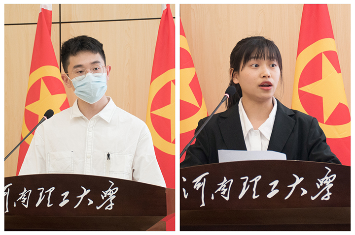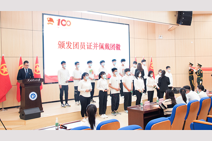 仪式在庄严的国歌中拉开序幕。老团员代表为新团员颁发团员证、佩戴团徽,新团员进行了入团宣誓,新团员代表、老团员代表分别进行了交流发言。支光辉代表学校团委向全校广大青年致以了节日的问候。他向全体团员青年提三点希望和要求:一是厚植家国情怀,树立远大理想。希望广大团员青年要厚植家国情怀,把个人理想自觉融入国家发展伟业,把爱国情、强国志、报国行融入实现中华民族伟大复兴的奋斗之中,扎根人民,奉献国家。二是站稳人民立场,担当时代责任。希望广大团员青年要继续发扬奉献祖国、服务人民的优秀品质,用脚步丈量祖国大地,用眼睛发现中国精神,用耳朵倾听人民呼声,用内心感应时代脉搏,把对祖国血浓于水、与人民同呼吸共命运的情感贯穿学业全过程、融汇在事业追求中,努力成长为堪当民族复兴重任的时代新人。三是矢志永久奋斗,实现人生价值。广大团员青年正处在最有求知欲、最有创造力的黄金时期,希望广大团员青年永葆创新激情,投身创新创造实践,增加知识储备,提升专业能力,坚持知行合一,真抓实干,在不断奋斗中实现人生价值。