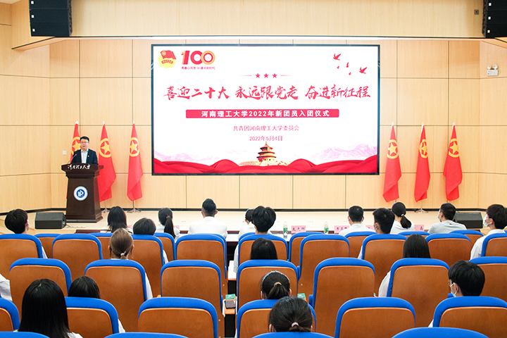 为庆祝中国共产主义青年团成立100周年,引领广大团员青年为实现第二个百年奋斗目标、实现中华民族伟大复兴的中国梦凝聚起强大青春力量,以优异的成绩迎接党的二十大召开,向建团百年献礼。5月4日中午,在工商学院尚为学术报告厅举行了河南理工大学2022年“喜迎二十大,永远跟党走,奋进新征程”集中入团仪式。校团委书记支光辉出席仪式。相关学院团委书记、新老团员代表参加仪式。