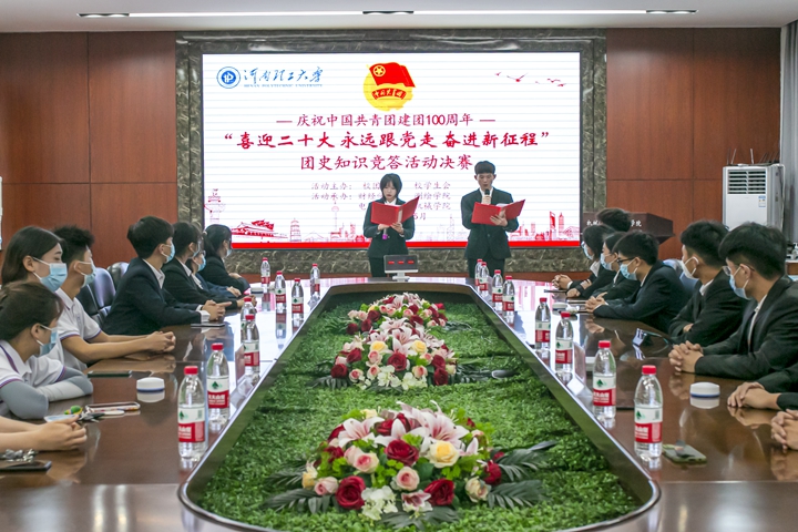 为全面贯彻落实习近平总书记在庆祝中国共产主义青年团成立100周年大会上的讲话精神和习近平总书记关于青年工作的重要思想,深入推进党史、团史的学习教育,庆祝中国共产主义青年团成立100周年,进一步加强团员青年思想政治教育。5月15日下午,由共青团河南理工大学委员会、校学生会主办,机械学院、电气学院、测绘学院、财经学院共同承办的“喜迎二十大 永远跟党走 奋进新征程”团史知识竞赛在机械学院217室举行。