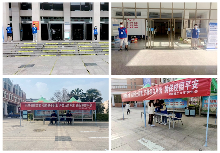 督导检查有力度。受疫情影响,国内多地高校实行校园封闭管控模式,多所高校因学生私自翻墙外出引发校园疫情。为堵住学校学生私自外出带来的疫情防控破防点,助力学校安全防控督导检查,校团委组织校、院两级学生会配合保卫处开展校园值班值守,每天40名同学在校园围墙附近巡逻,劝导学生严禁私自翻墙外出,排除疫情风险点,切断疫情传播链。校、院两级学生会组织在教学楼设置疫情防控督导岗,提醒学生科学佩戴口罩,保持安全社交距离,服从学校统一安排,配合学校防控管理,为平安校园贡献力量。