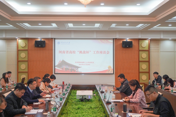 11月20日,河南高校“挑战杯”工作座谈会在学校南校区力行楼一楼会议室召开。团省委高校部部长刘淑丽、团省委高校部林钰程、团省委高校部栾杰、郑州大学团委书记王红晓、河南科技大学团委书记曹高洋、华北水利水电大学团委书记程霞、中原工学院团委书记杨为学、安阳师范学院团委书记张荣花、商丘师范学院团委书记刘培培、洛阳师范学院团委书记曹嘉、郑州铁路职业技术学院团委书记刘辉、河南经贸职业技术学院团委书记乔捷及学校相关工作人员参加,座谈会由我校团委书记支光辉主持。