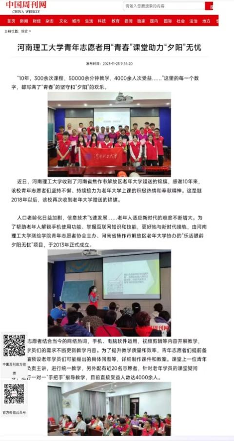 为了帮助老年人解锁手机使用功能、掌握互联网知识和技能,由河南理工大学测绘学院青年志愿者协会主办、河南省焦作市解放区老年大学协办的“乐活银龄夕阳无忧”项目,于2013年正式成立。