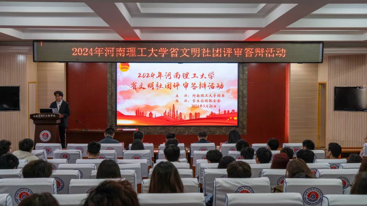 为深入贯彻党的二十大精神,学习习近平总书记关于精神文明建设的重要指示精神,进一步推动我校文明社团创建活动深入开展,按照中共河南省委教育工委、河南省教育厅《关于开展2024年度全省教育系统“两创两争”活动先进集体和先进个人推选活动的通知》精神,3月26日下午,校团委在机械学院205室开展了2024年度河南理工大学“河南省文明社团”的评选推荐工作。校团委书记支光辉、学生处副处长肖庆伦、保卫处副处长张勐、校团委副书记于江、宣传部综合办公室主任张莉等学生社团建设管理评议委员会部分成员单位代表担任评委。200余名各社团成员代表观摩了现场评审活动。