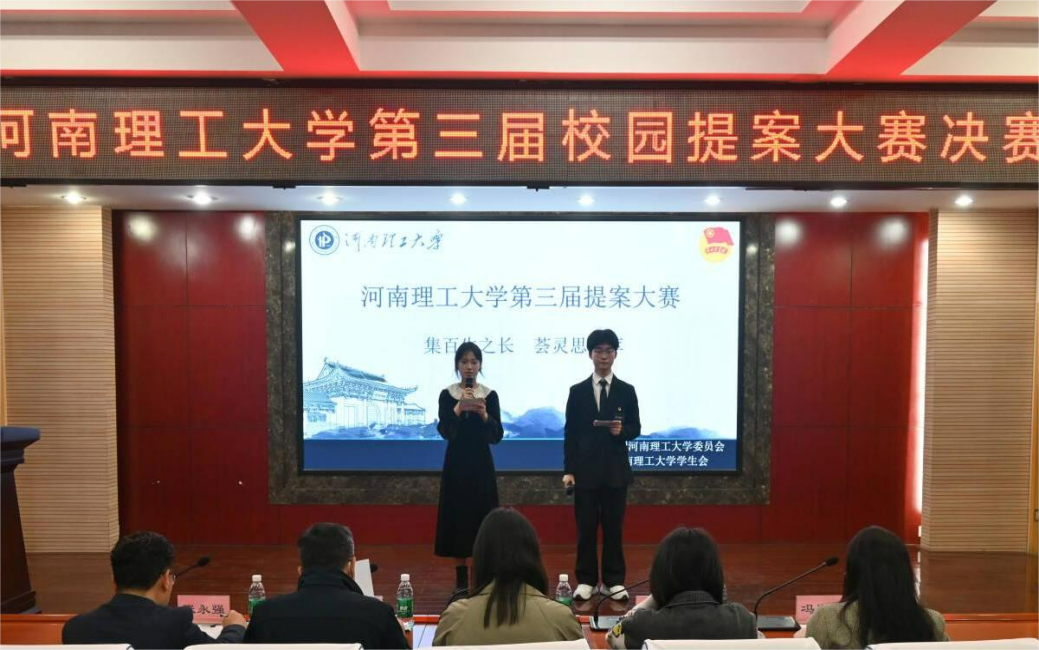本网讯(通讯员·冯肖贞、郜斌、李晶/文·张浩禛/图)权益有言,提案有声。3月31日下午,由校团委指导,校学生会主办,机械学院学生会承办的河南理工大学第三届“集百生之长 荟灵思之萃”提案大赛决赛于机械学院205会议室成功举办。我校校团委、学生处、教务处、研工部、后勤保障部等担任本次大赛评委。