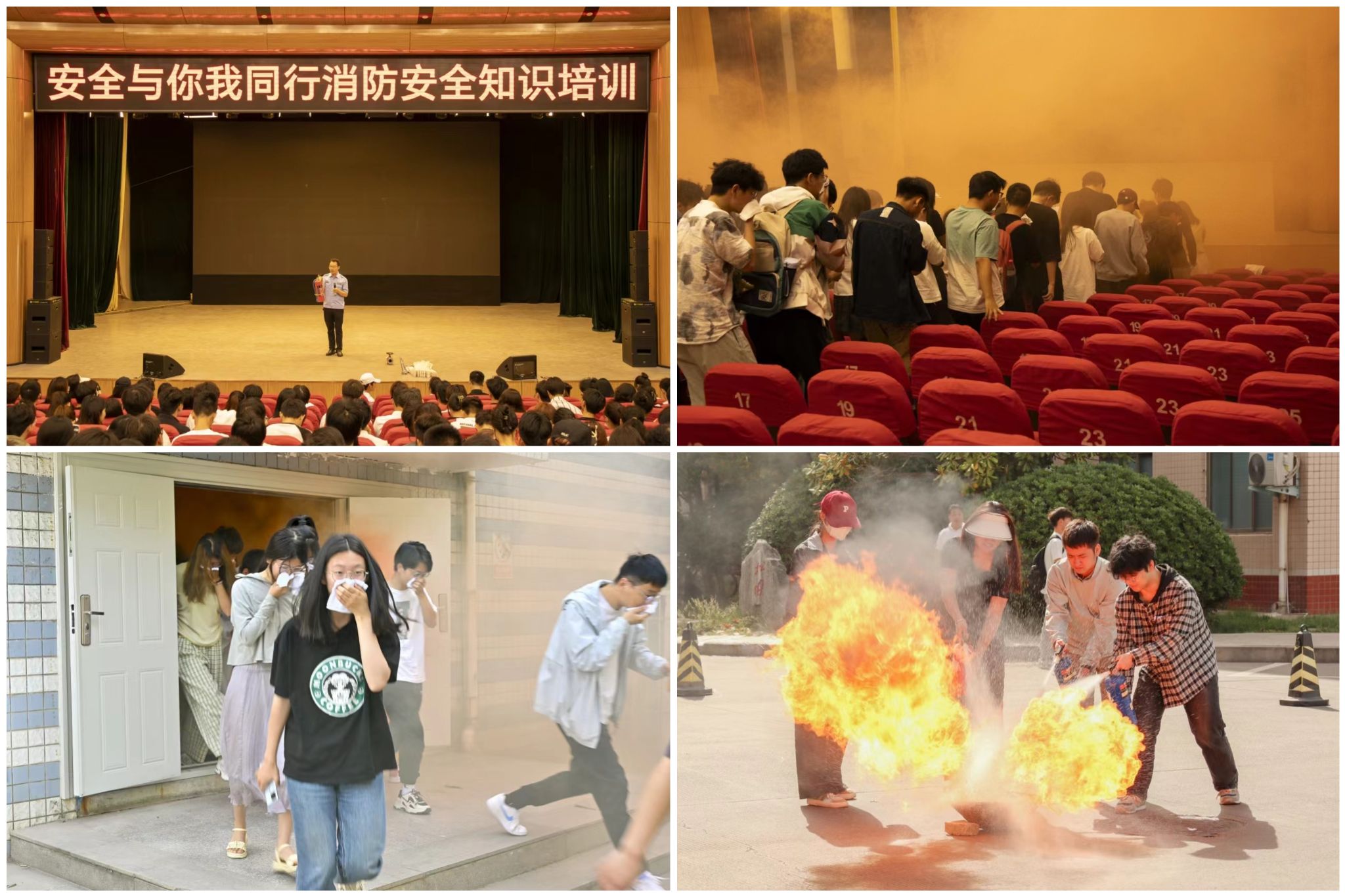 培训分为理论知识和实操演练。学校消防科科长时烽超结合近期发生的火灾案例,围绕用火用电、日常巡防、火灾紧急疏散、安全意识提升四个方面以及灭火器材的正确使用方法和逃生自救常识进行了全面而深入的讲解,让师生们深刻认识到校园消防安全的重要性。理论培训结束后进行了礼堂火灾紧急疏散预案演练,所有参会人员听从指令,服从指挥,迅速而有序地撤离至安全区域。在学校消防员的指导下,参会人员又进行了灭火器材的实际操作,掌握了火灾初期扑灭技能。整个演练过程紧张有序,师生们表现出色,展现了良好的应急反应能力和团队协作精神。