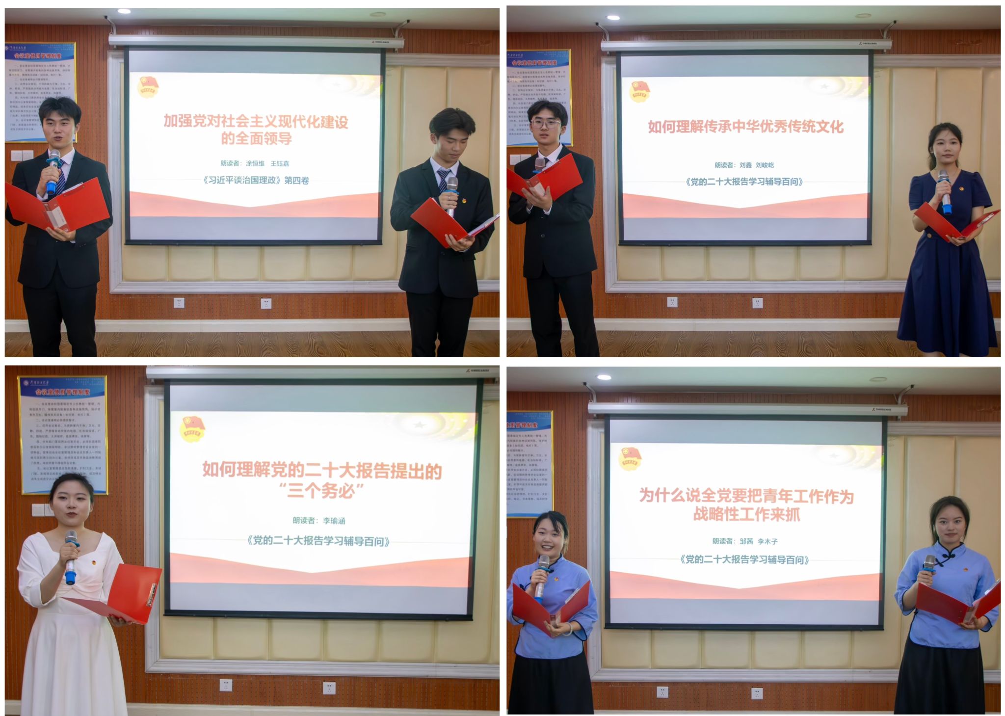 活动前期,校团委紧扣青年所需所惑,创新方法手段,促进各级团干部、学生骨干以上率下带头学,基层团支部全面覆盖广泛学,进行“党的二十大精神百问百答”微视频拍摄和“读原著、学原文 悟原理”原音频录制,用党的创新理论武装青年,不断增进广大青年对党的创新理论的政治认同、思想认同、理论认同、情感认同,不断提高青年理论素养和能力本领。经前期对拍摄的微视频、原音频进行集中遴选,最终评选出16名同学参加“读原著 学原文 悟原理”微视频、原音频现场展示评选活动。在现场展示评选环节,16名同学用饱满的热情,生动阐释了党的创新理论成果,展现了新时代团员青年高举旗帜、紧跟核心、扎实学习、勇于攀登的良好精神风貌。通过评委现场评分,外国语学院李瑜涵获得一等奖,计算机学院杨其麟等6名同学获得二等奖,电气学院高芷妍等9名同学获得三等奖。