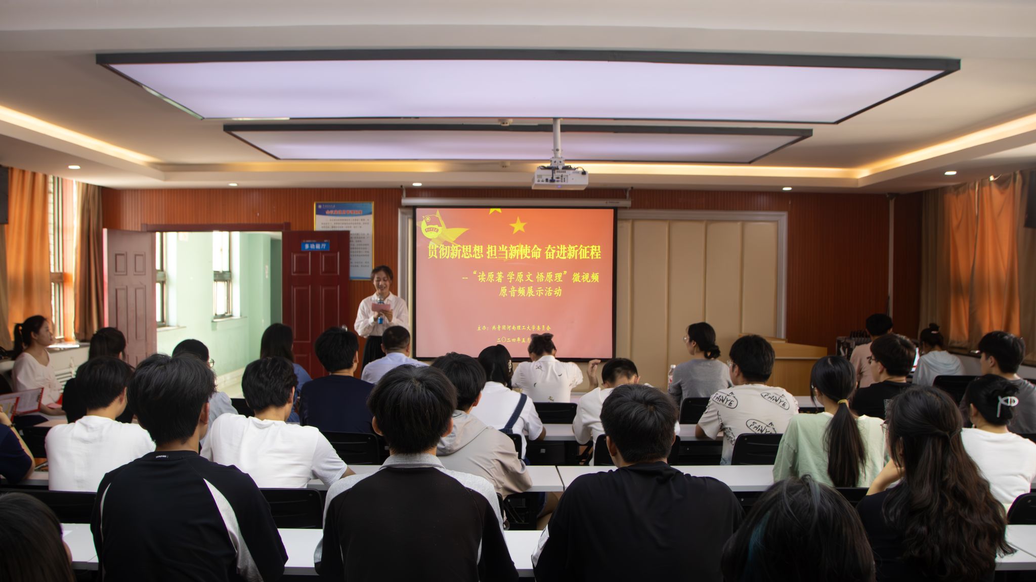 本网讯 (李智慧 高层稳)为深入学习宣传贯彻习近平新时代中国特色社会主义思想和党的二十大精神,切实把广大团员青年的思想和行动统一到党中央决策部署上来,进一步提升共青团引领力、组织力、服务力,结合我校共青团实际和青年特点,5月26日,校团委在大学生活动中心401举办“读原著 学原文 悟原理”微视频 原音频展示评选活动。党委宣传部、学生处、教务处、校团委相关负责人担任本次活动评委。校学生会骨干、青马工程培养班学员参加本次活动。