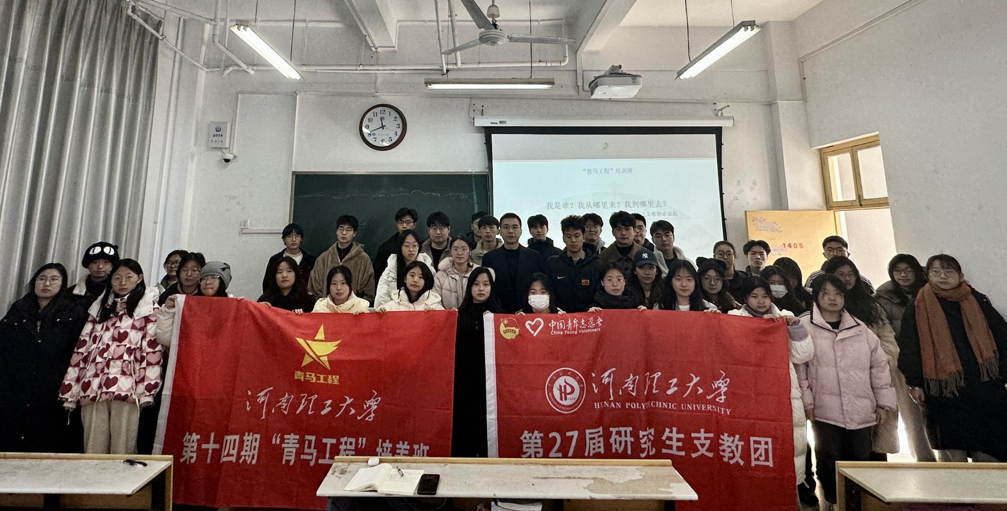 (图/王宇航 文/张元博)为深入学习贯彻习近平总书记关于青年工作的重要思想,不断强化“青马工程”为党育才的政治功能,12月15日,我校第十四期“青马工程”培养班第四次专题讲座在南校区材料学院1405教室举行。校优秀教师王家涛受邀为第十四期“青马工程”学员做主题为《我是谁?我从哪里来?我到哪里去?——从马克思主义唯物论说起》的专题讲座。第十四期青马班学员与第27届研究生支教团成员参加理论学习。