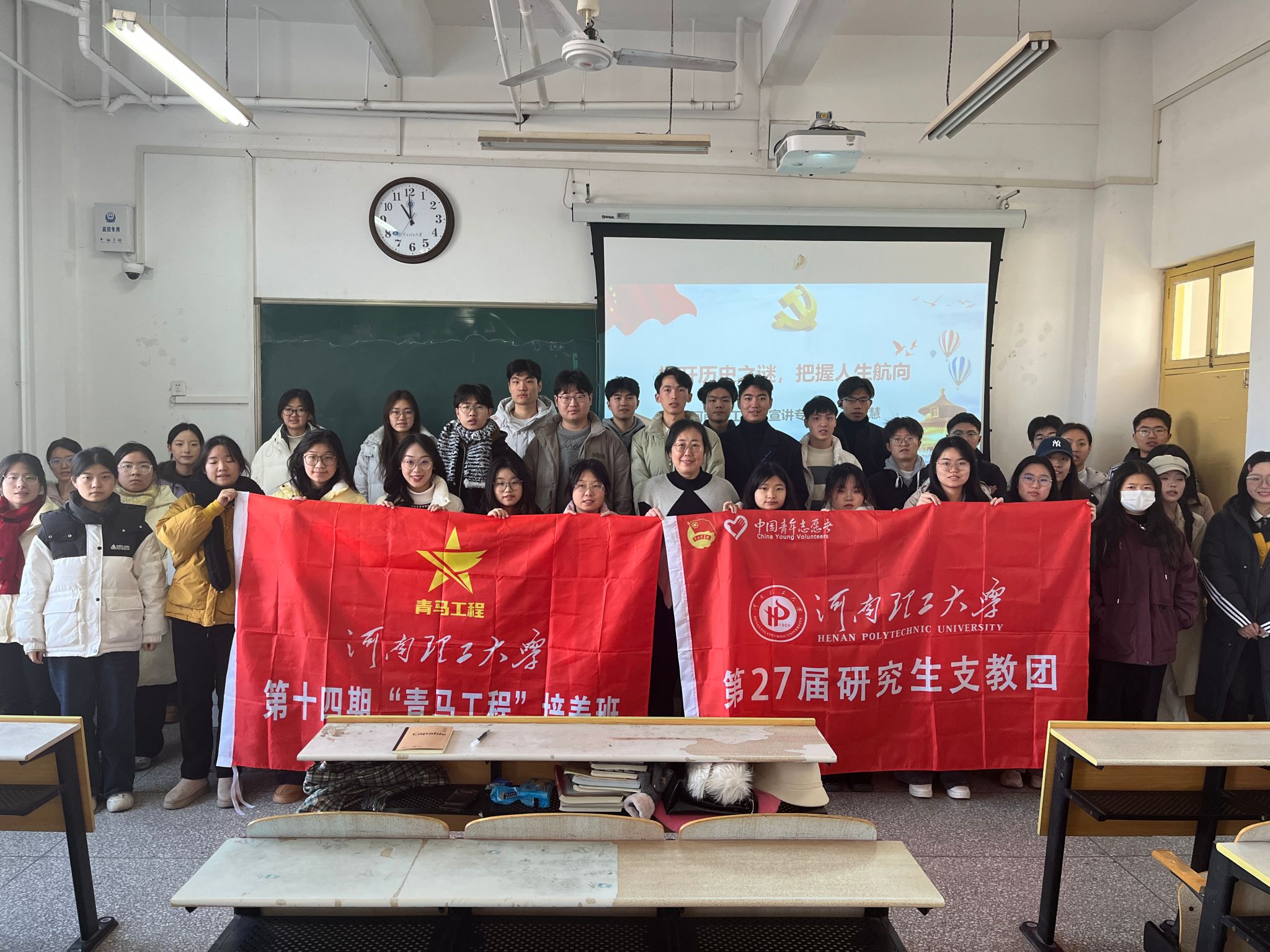 (图/张元博 文/孙云静)为贯彻落实习近平总书记关于青年工作的重要思想,引导当代青年成长为中国特色社会主义事业的合格建设者和可靠接班人,12月21日,我校第十四期“青马工程”培养班第五次专题讲座在南校区材料学院1405教室举行。马克思主义学院秦晓慧老师受邀为第十四期“青马工程”培养班学员作题为《揭开历史之谜,把握人生航向》的专题讲座。第十四期青马班学员与第27届研究生支教团成员参加理论学习。