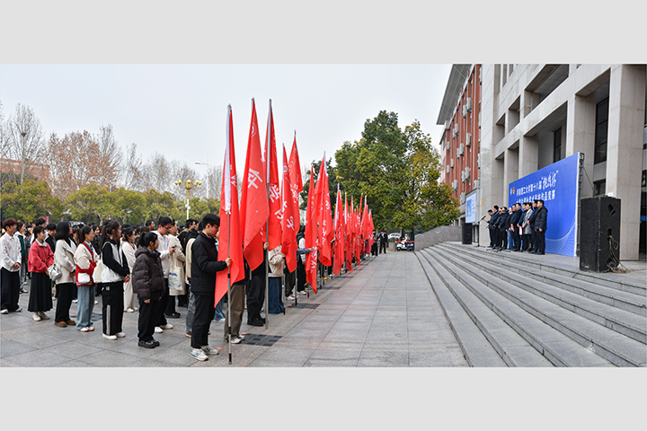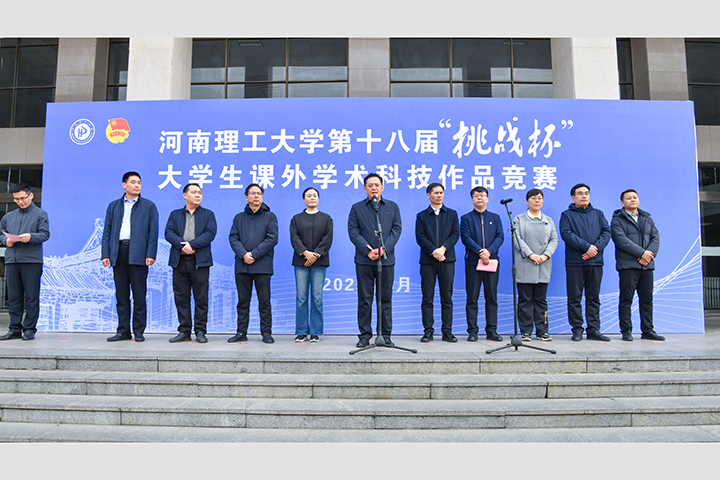 本网讯(通讯员 马雨彤 刘霁月/文 记者 李为群/图)3月11日下午,河南理工大学第十八届“挑战杯”大学生课外学术科技作品竞赛决赛开幕式在南校区三号教学楼前广场顺利举行。校党委副书记解伟,党委学工部、党委研工部、校团委、人事处、教务处、科技处、社科处、招就处、创新创业学院等相关单位负责人出席开幕式。各学院学生代表共计620余人参加开幕式,会议由校团委副书记于江主持。