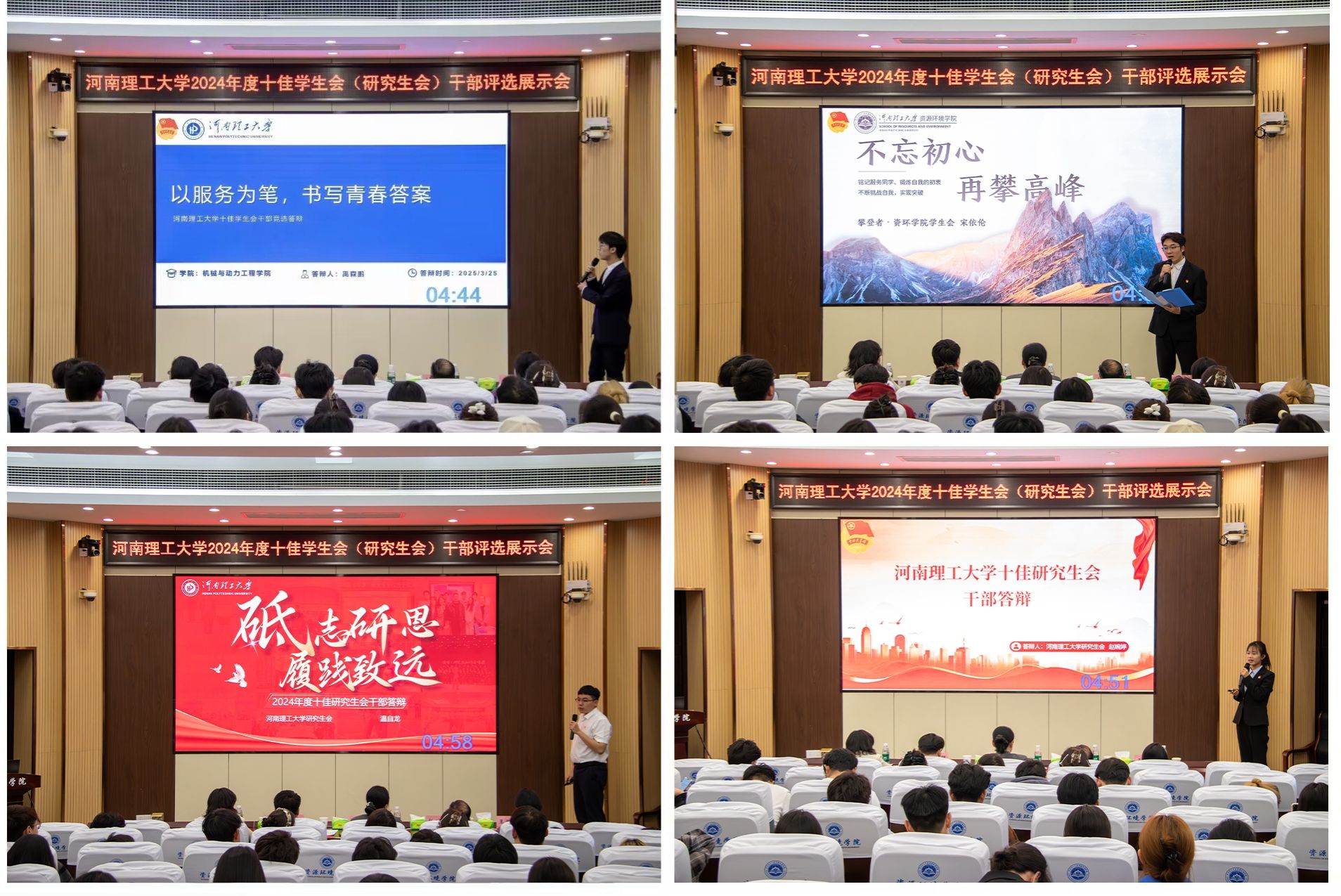 本网讯(通讯员 冯肖贞 牛子青 任可)为加强学校学生会(研究生)干部队伍建设,全面提高学生会(研究生会)干部综合素质,促进学生会(研究生会)干部更好地践行全心全意为同学服务的宗旨,3月25日下午,学校2024年度十佳学生会(研究生会)干部评选展示会在资环学院第一学术报告厅举行。校团委、研工部、学生处、教务处主要负责同志担任评选活动评委。校院两级学生会(研究生会)组织成员参加评选展示会。