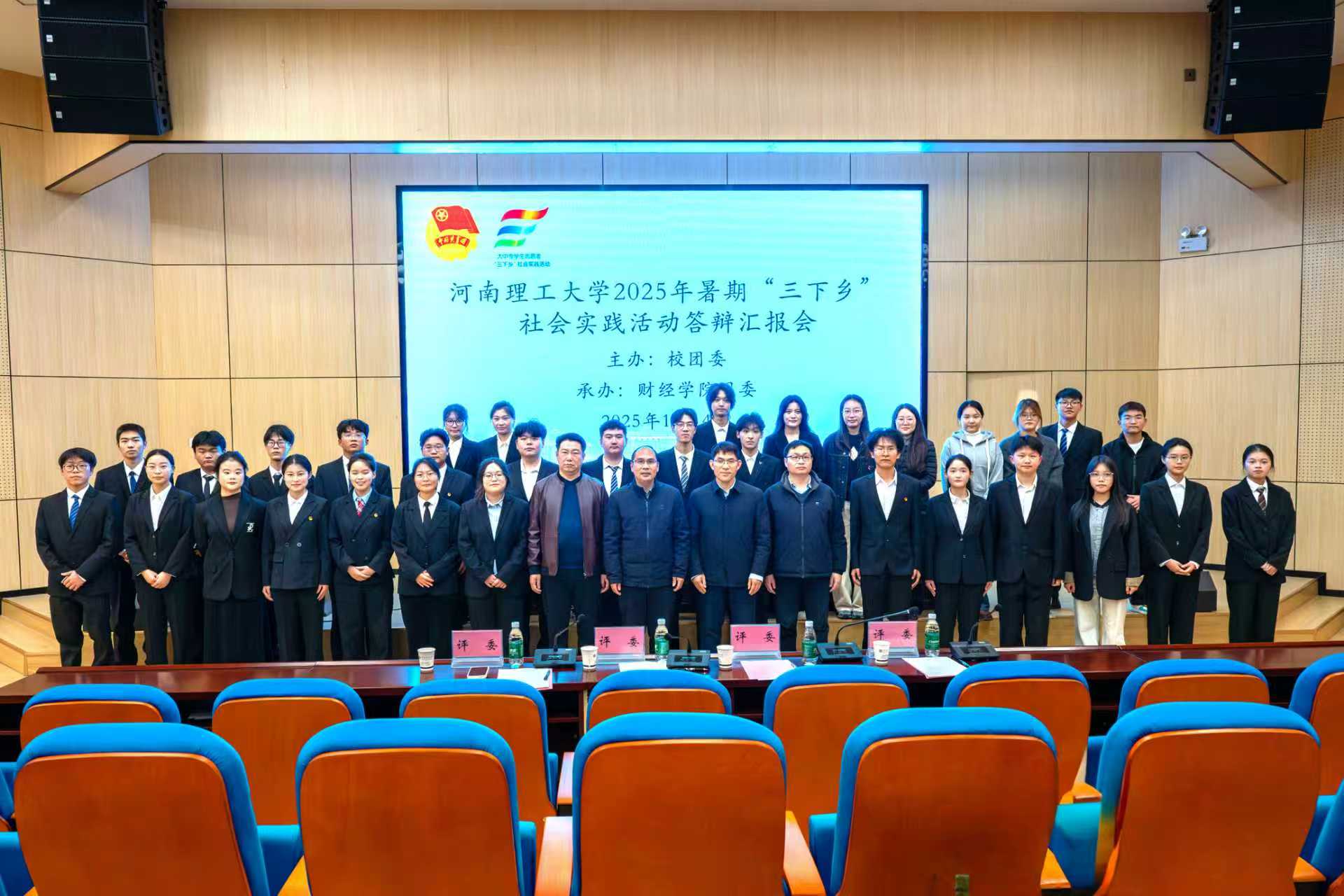 (王斯琪、郑锦芬/文 闫柄润/图)为总结我校2025年暑假“三下乡”社会实践工作,切实提升实践育人效果,11月4日下午,我校2025暑期“三下乡”社会实践活动答辩汇报会在财经学院一楼尚为学术报告厅举行。本次答辩汇报会由校团委主办,财经学院团委承办。校团委、党委学工部、教务处、研究生工作部、招就处等相关职能部门负责人担任评委。
