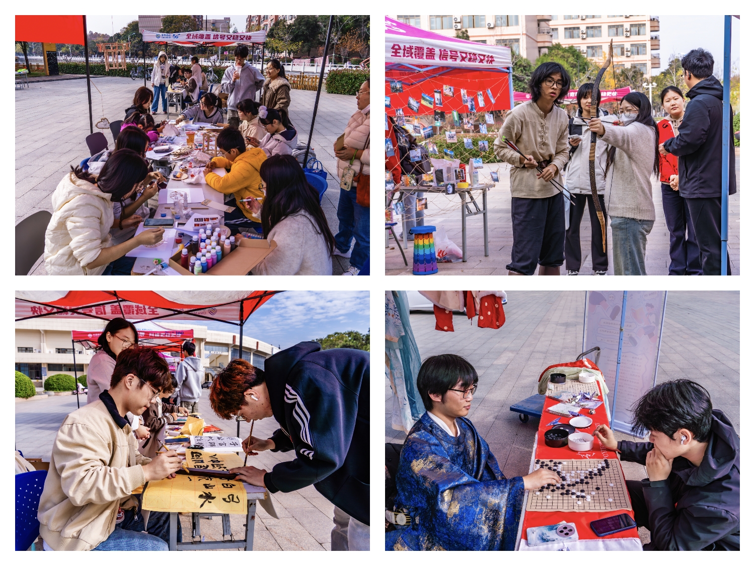 为繁荣校园文化氛围、促进学生全面发展,11月15日,“社团文化巡礼——冬日雅集游园盛典”在南校区新体场西拉开帷幕。本次活动由大学生传统文化协会牵头,联合大学生雏声书画社、大学生创意手绘社等七大社团共同举办。