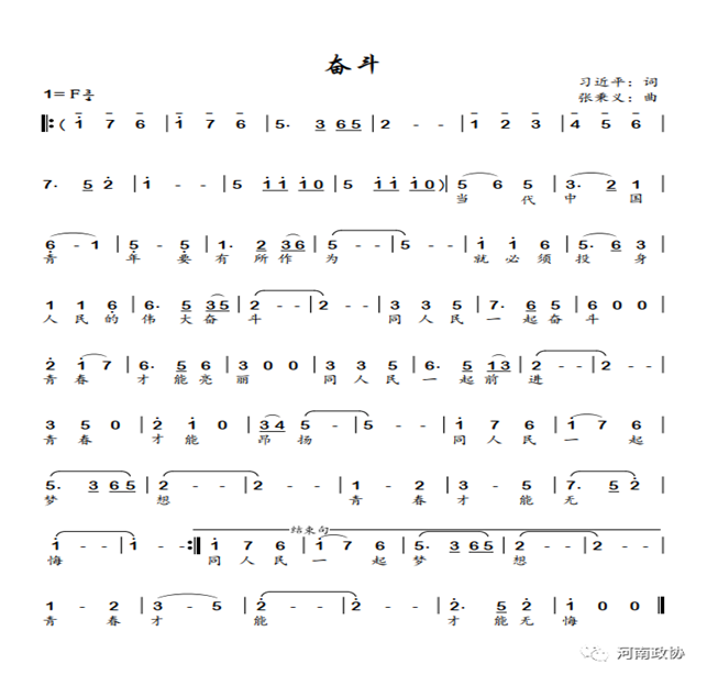 在五四青年节来临之际,以“习近平总书记对青年寄语”作词,由河南省原政协秘书长张秉义同志谱曲,推出三首歌曲——《青春》、《奋斗》、《攀登》。歌曲在表达了习近平总书记对新时代青年的殷切期望的同时,也饱含着新时代青年的奋斗和梦想。希望全校共青团员和青年朋友们一起学习和传唱这些歌曲,通过歌唱展现出我校团员青年以灾难为教材,与祖国同命运;以传唱金句活动为契机,与人民同呼吸的精神风貌。在此,共青团河南理工大学委员会、音乐学院向全校广大共青团员和青年朋友们发出如下倡议: