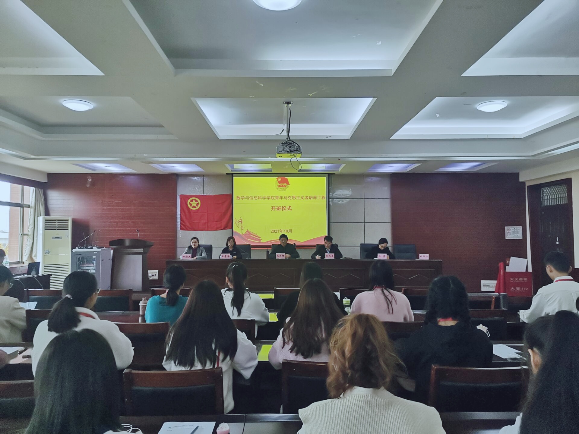 开班仪式在奏唱《中华人民共和国国歌》中拉开帷幕。王孝华宣读《数学与信息科学学院“青年马克思主义者培养工程”实施方案》。成军祥向新学员表示祝贺并为“青马工程”培养班授旗。典型发言环节,学生代表翟言玲和管锋彬上台发言,用生动的语言表达自己对青年马克思主义培养班的祝福和期待。