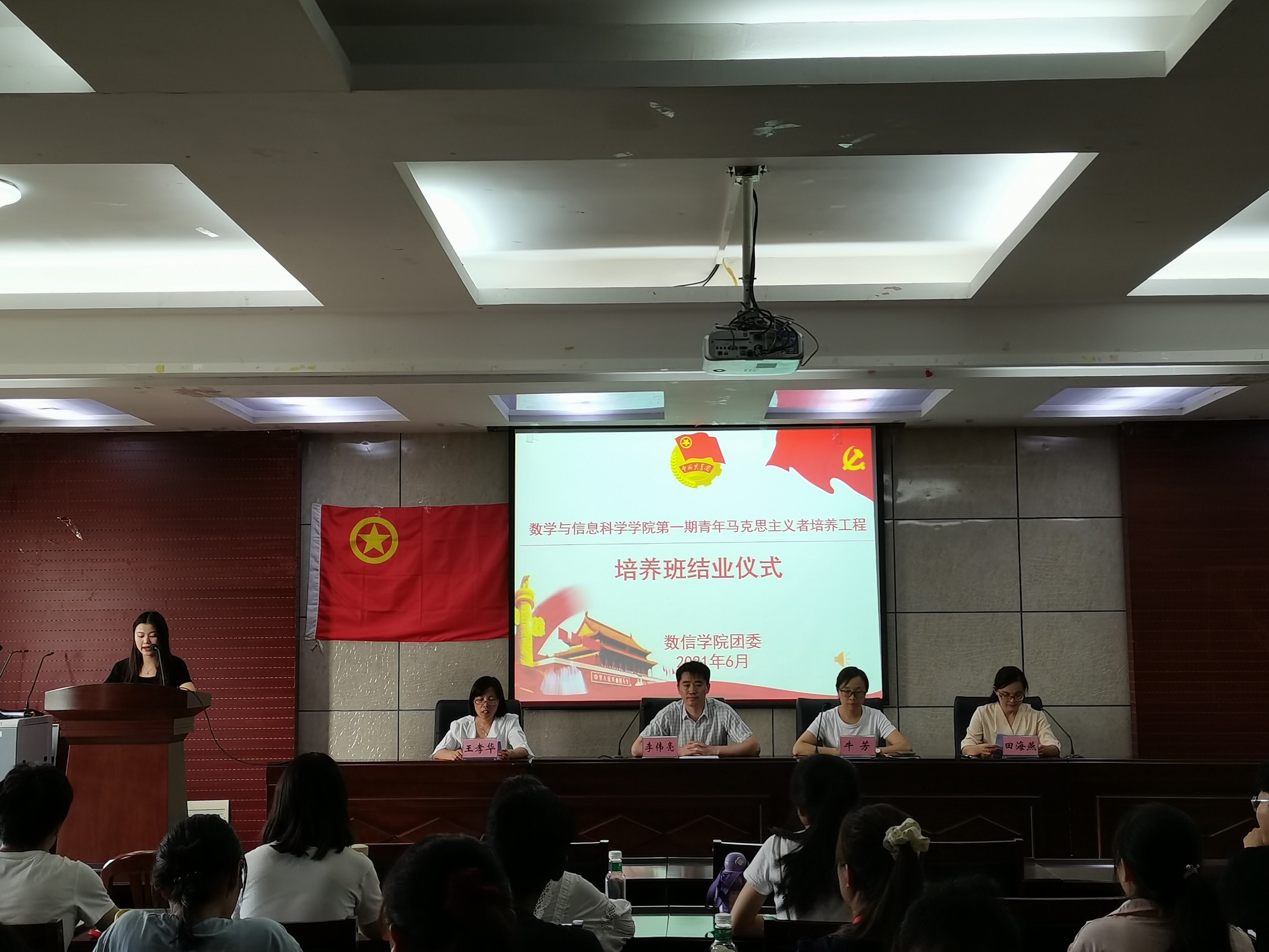 6月28日下午,数信学院第一期青年马克思主义者培养工程培养班结业仪式于在学院楼3401举办。学院党委副书记李伟亮老师,王孝华老师,牛芳老师,田海燕老师以及青马培训班全体学员参加仪式,信息1802班李莹同学主持结业仪式。