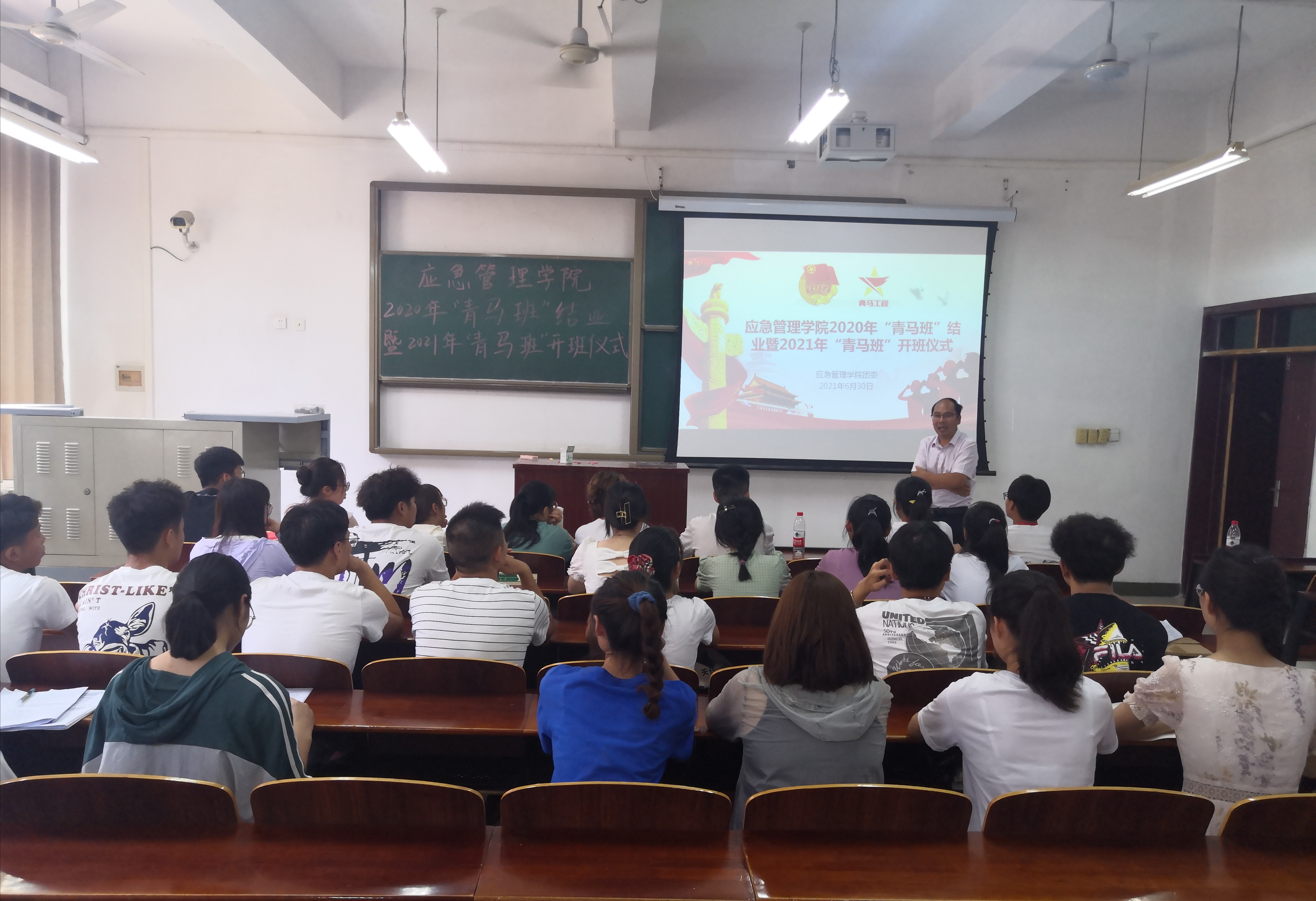 6月30日,应急管理学院在文综楼110教室举行2020年“青马班”结业暨2021年“青马班”开班仪式,学院党委副书记赵观石出席仪式,第一期和第二期“青马班”学员40余人参加仪式。