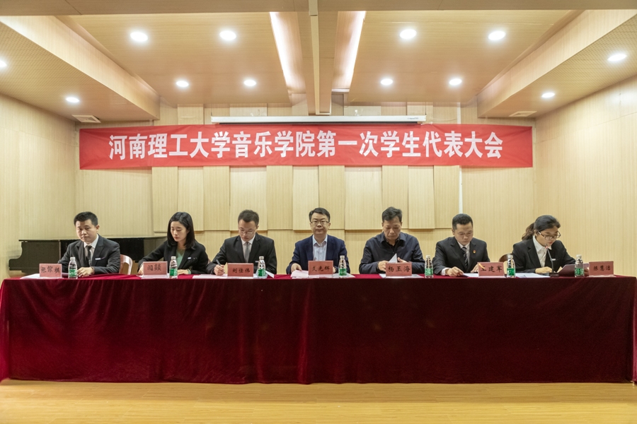 会议在慷慨激昂的国歌声中拉开帷幕。校学生会主席刘佳伟和院团委老师闫燚分别为大会致辞,张傢棋代表学生会作《求真务实,开拓创新,在创建高水平教学研究型大学的征程中铸就青春辉煌》的工作报告。大会审议通过了《音乐学院学生会章程》,表决通过了学生会工作报告,选举产生了由贾存旺、龚正、李锬、李滨、丁新艳五名同学组成的音乐学院学生会委员会。