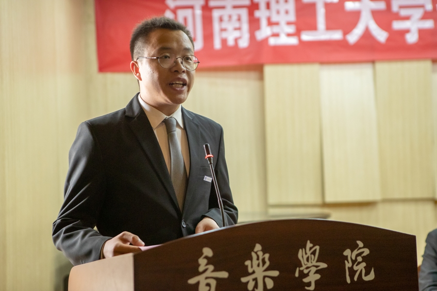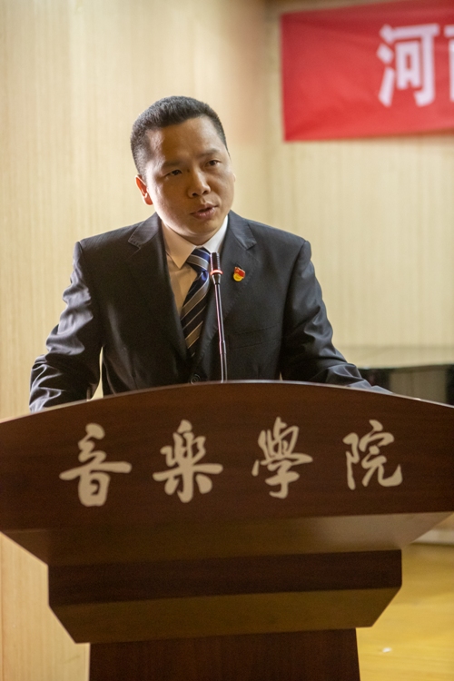 校团委书记支光辉向大会召开致辞。他充分肯定了音乐学院近年来团学工作取得的成绩,他希望全院青年学生要高举中国特色社会主义伟大旗帜,按照习近平总书记提出的“大家要志存高远、脚踏实地,学好知识,打好基础,增长才干,将来为中华民族伟大复兴贡献自己的智慧和力量”的要求,进一步认真学习、踏实工作、勤于思考、乐于奉献,为全面开创国内一流特色高水平大学建设新局面,为实现中原崛起和中华民族伟大复兴而努力奋斗!