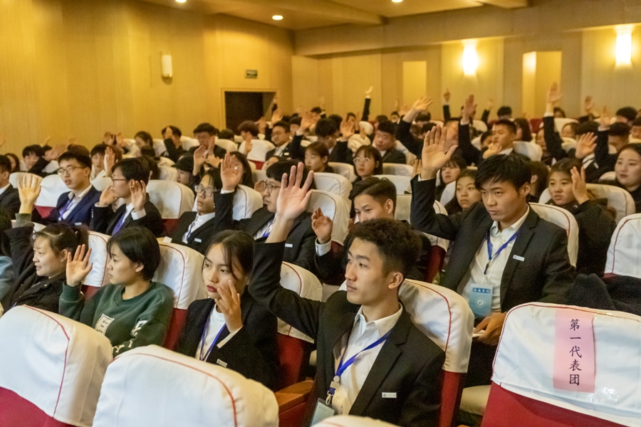 11月3日上午九点,音乐学院第一次学生代表大会在学院小音乐厅举行。校团委书记支光辉、学院党总支书记杨玉海、校学生会主席刘佳伟、学院党总支副书记王建军、学院团委书记闫燚等出席会议,111位学生代表参加会议。会议由院团委副书记陈慧洁老师主持。