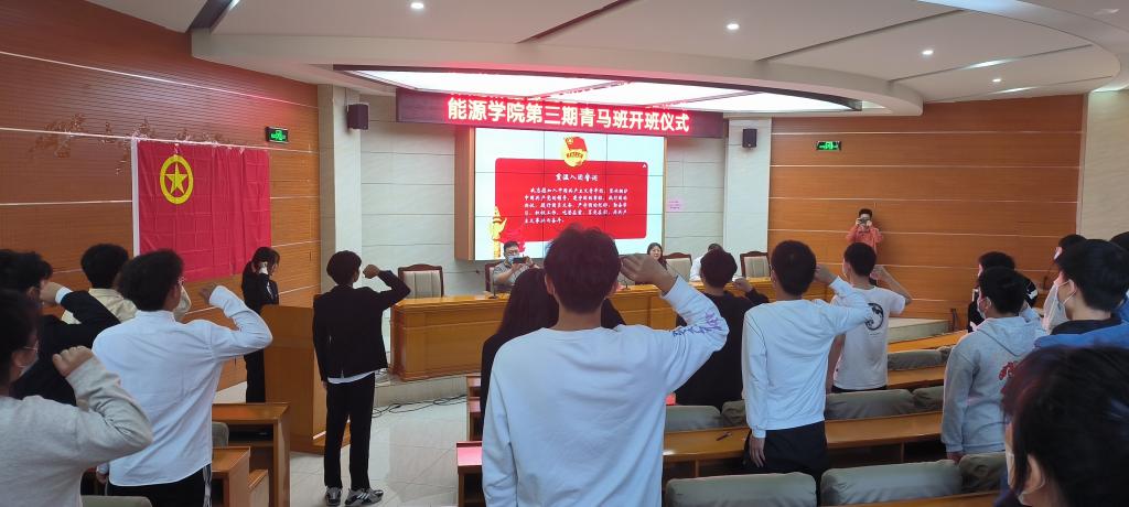 会议伊始,全体成员起立共唱共青团团歌,重温入团誓词。第二期“青马工程”培训班优秀学员代表霍扬志发言,分享了自身在“青马工程”培训班的收获和感悟。第三期“青马工程”培训班学员任静、霍笑代表第三期“青马工程”培训班全体学员承诺:新一期青马班学员定会不负重望,始终坚定心中理想信念,潜心学习理论思想,通过努力和奋斗成为新一代国家建设者与社会主义接班人。