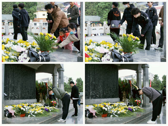 参加活动的青年学生徒步前往焦作市烈士陵园。团员青年们佩戴团徽,全体整齐列队,正衣肃立,在肃穆庄重的哀乐中,鞠躬致敬,默哀缅怀。主持人怀揣着崇高的敬意宣读了祭文,表达了对为祖国和民族付出宝贵生命的革命先烈们的感激和尊敬。学生党员代表张强带领全体成员在烈士纪念碑前庄严宣誓,决心时刻铭记自己肩负的历史使命,继承革命先烈的光辉遗志,弘扬革命传统,精诚团结,开拓创新,立志成才,报效祖国。随后,全体参加祭扫人员缓步绕行,近前瞻仰英雄纪念碑,向纪念碑献花,环顾革命烈士英名墙,寄托哀思。仪式结束后,青年们依次参观了事迹陈列馆、烈士事迹纪念馆、烈士碑林等等,以此追忆革命先烈,深刻感悟革命先烈的丰功伟绩。