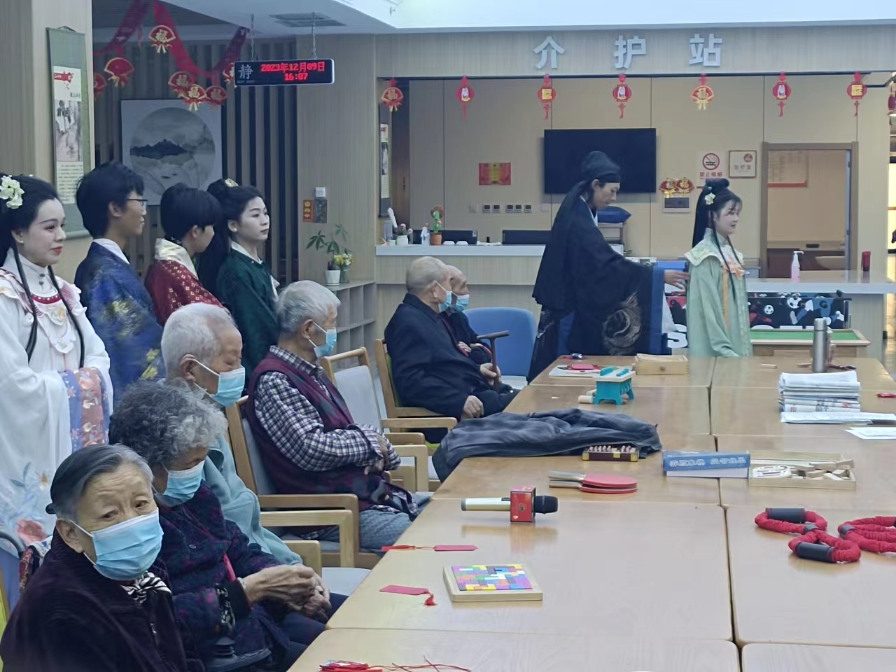 敬老尊贤传古道,孝润情浓又今朝。为弘扬“尊老,敬老,爱老”的传统美德,12月9日,大学生承衣汉服社组织同袍穿上汉服走进龙佰国际康养城参加“同袍雅聚 敬老尊贤”国风主题公益活动,参观鲁斋学堂,走进颐养院慰问,以汉服之姿、祈福之行表达敬老尊贤的中国传统文化之美。