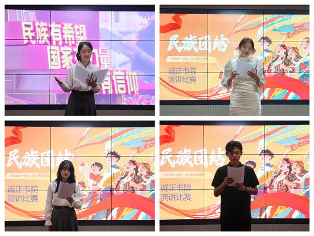 为深入学习习近平总书记关于加强和改进民族工作的重要思想,持续推动中央、省委民族工作会议精神落地生根,铸牢广大师生中华民族共同体意识,9月19日,诚正书院在116活动室举办了“中华民族一家亲,同心共筑中国梦”主题演讲比赛。团委负责人李雪峰和学工办负责人米丽娜担任评委。