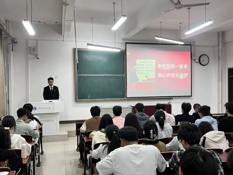 杨其麟以“志之所向,愿之所在”为主题,系统介绍了“西部计划”的政策内容以及研究生支教团的概况,他详细解读了研究生支教团的招募标准与政策保障,并在最后播放往届成员支教期间的影像记录,生动诠释“用一年不长的时间,做一件终生难忘的事”的服务理念,鼓励更多同学投身西部建设、贡献青春力量。刘博源以“中华民族一家亲,同心共筑中国梦”为主题,从中华民族共同体意识的理论建构、深刻认识铸牢中华民族共同体意识的重大意义、培育担当民族复兴大任的时代新人三部分展开介绍,让同学们认识到“各民族要像石榴籽那样紧紧抱在一起”的深刻内涵,引导青年学子以切实行动扛起实现民族复兴的时代重任。