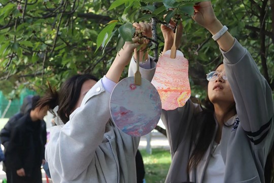 趣玩传统技艺,解锁千年匠心密码。此次活动设置了书法、漆扇、剪纸、投壶等丰富多彩的游戏体验区。书法体验区里,同学们尽情挥洒笔墨,一笔一划都流露出独属于自己的风格;漆扇体验区内,同学们手执洁白的扇子,通过沾染、点彩等技法,在扇子上创作出风格多样又瑰丽动人的图案;剪纸体验区内,同学们手起刀落,就剪出了兔子、小鱼等多种样式又栩栩如生的剪纸;投壶体验区,大家手拿投物,神情或紧张、或激动,皆聚精会神地盯着前方的目标物,每一次精准投掷都引发阵阵欢呼。