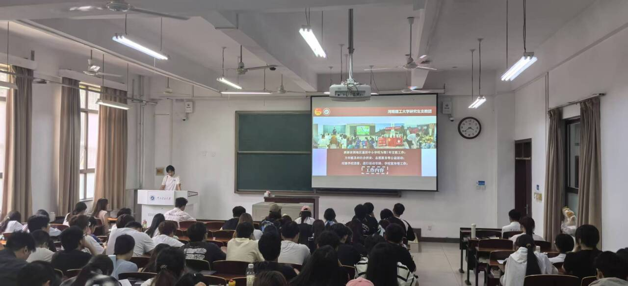 会议伊始,支教团学生代表“志之所向,愿之所在”为主题开展主题宣讲,通过解读党的二十大报告中“教育优先发展”战略部署,阐明新时代青年投身教育帮扶的重大意义。以国家政策为导向,倡导同学们无私奉献,将个人发展与国家、人民的利益紧密相连,积极投身到艰苦的支教工作中。接着她围绕西部计划展开详细介绍,重点阐述了其服务内容、八个专项领域、政策支持体系及要求。之后韩笑对研究生支教团计划进行了介绍,并从什么是研究生支教团志愿者项目、河南理工大学研究生支教团的发展历史、工作内容、政策保障、服务地、招募管理办法、选拔条件等方面进行介绍,为同学们提供了明确的思想引领和前进方向。会议尾声,她呼吁同学们踊跃投身到支教这项伟大的事业中,与支教地区共赴一场充满意义的青春之约。