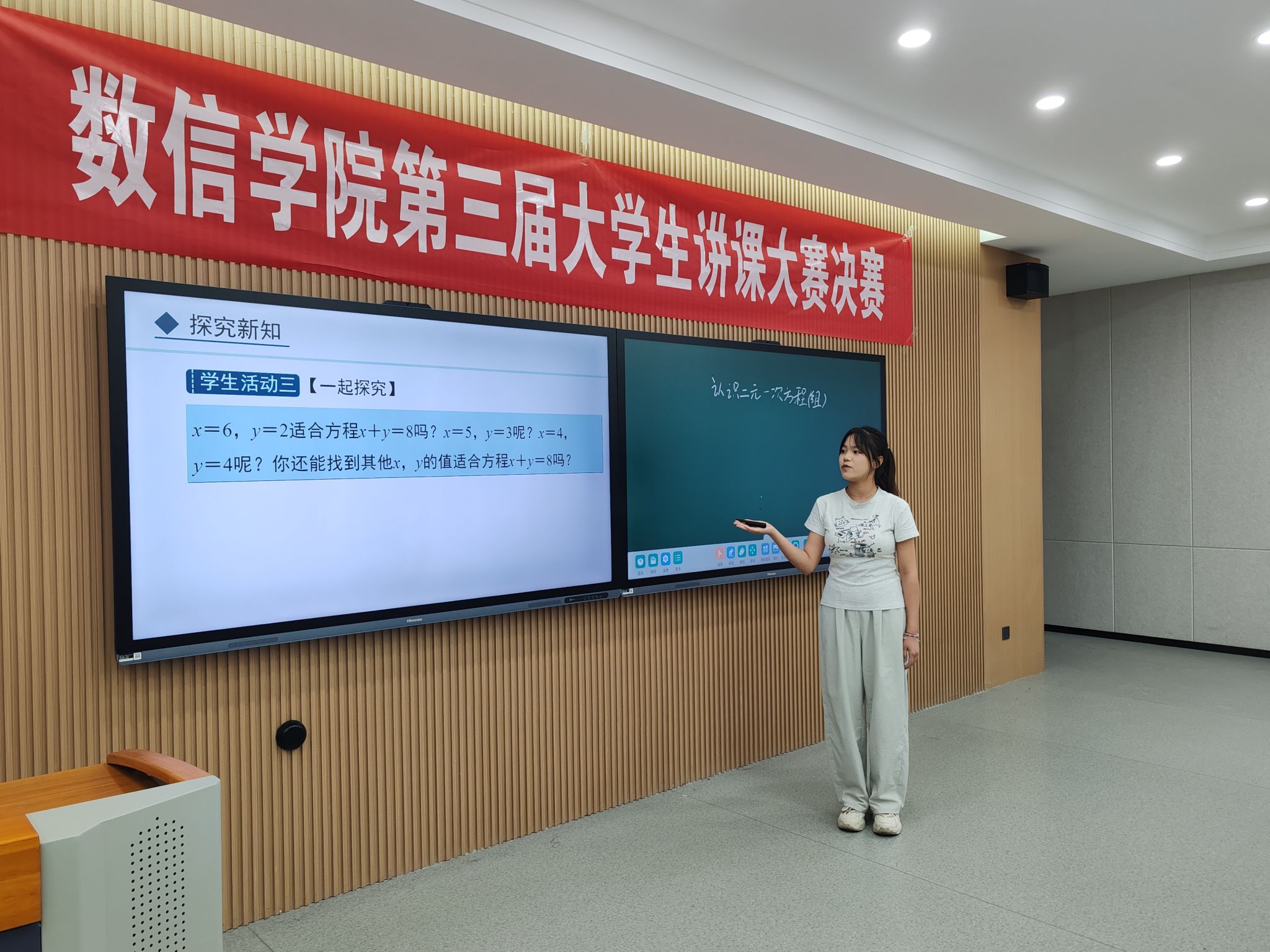 为了进一步提高学生的教学基本素质和能力,加强实践应用能力培养,5月14日下午,数信学院在三号教学楼3205智慧教室举办讲课大赛决赛。数信学院仝卫卫、王振辉,焦作市光明中学孙天祥、仇春红,示范区实验中学梁瑛五位一线教学名师担任评委。该院各年级学生代表观看了比赛。