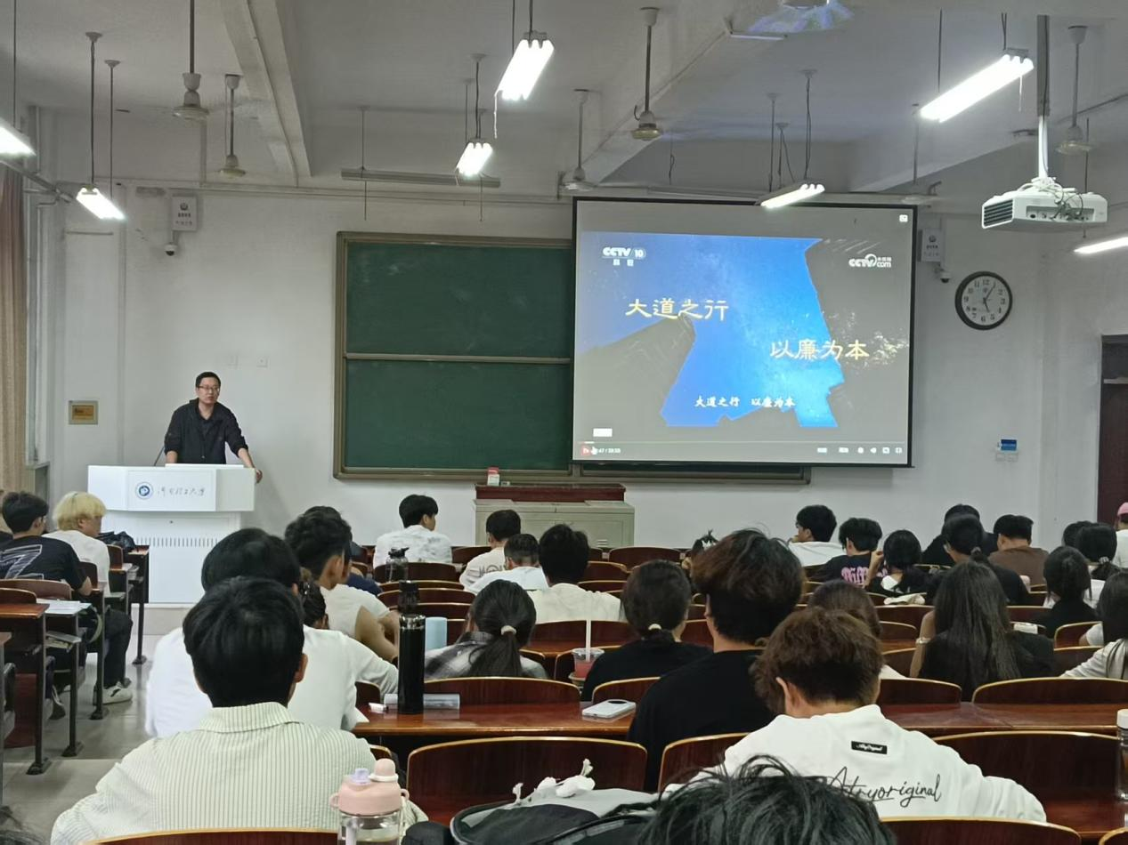 为扎实开展深入贯彻中央八项规定精神学习教育,持续巩固深化党纪学习教育成果,强化团员思想政治引领,应急管理学院于5月13日开展“大道之行 以廉为本”廉洁意识教育主题团课。本次活动以“坚持正面典型为榜样,反面典型为镜鉴”为主题,上好正反典型教育“两堂课”,为同学们筑牢思想防线,涵养浩然正气。