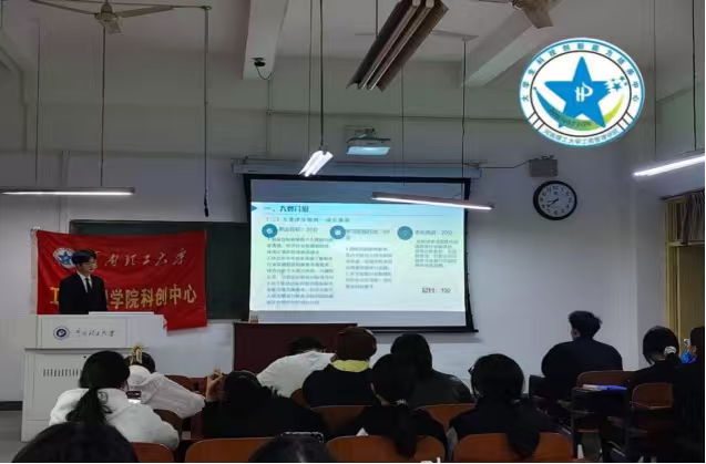 宣介会伊始,主持人许茜阳向到场同学致以热烈欢迎,并简要介绍了“职规赛”作为高校科创赛事的价值与意义。随后,主讲人刘居政结合赛事官方文件与往届优秀案例,系统介绍了“职规赛”的参赛规则要求、流程及奖项设置,细致的讲解让同学们对备赛路径有了清晰的认知。而往届学长学姐获奖的成果展示,更点燃了同学们的参赛热情,在互动答疑环节,科创中心工作人员针对同学们集中关注的展示形式、报名时间等问题逐一耐心解答,现场互动频繁、氛围热烈。