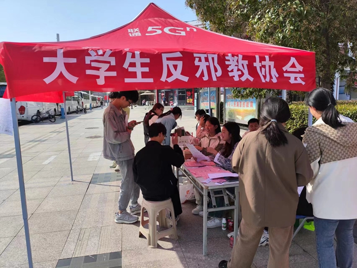 活动期间,协会志愿者通过发放反邪教教育宣传单、讲解如何甄别邪教、举行“有奖问答”小游戏等方式,为师生讲解反邪教和防诈骗相关知识,同时引导师生坚决抵制非法宗教活动,增强防范意识,提升自我防御能力,营造丰富的校园文化生活。本次活动共向师生发放了反邪教宣传单200余份,反邪教笔记本50余本。