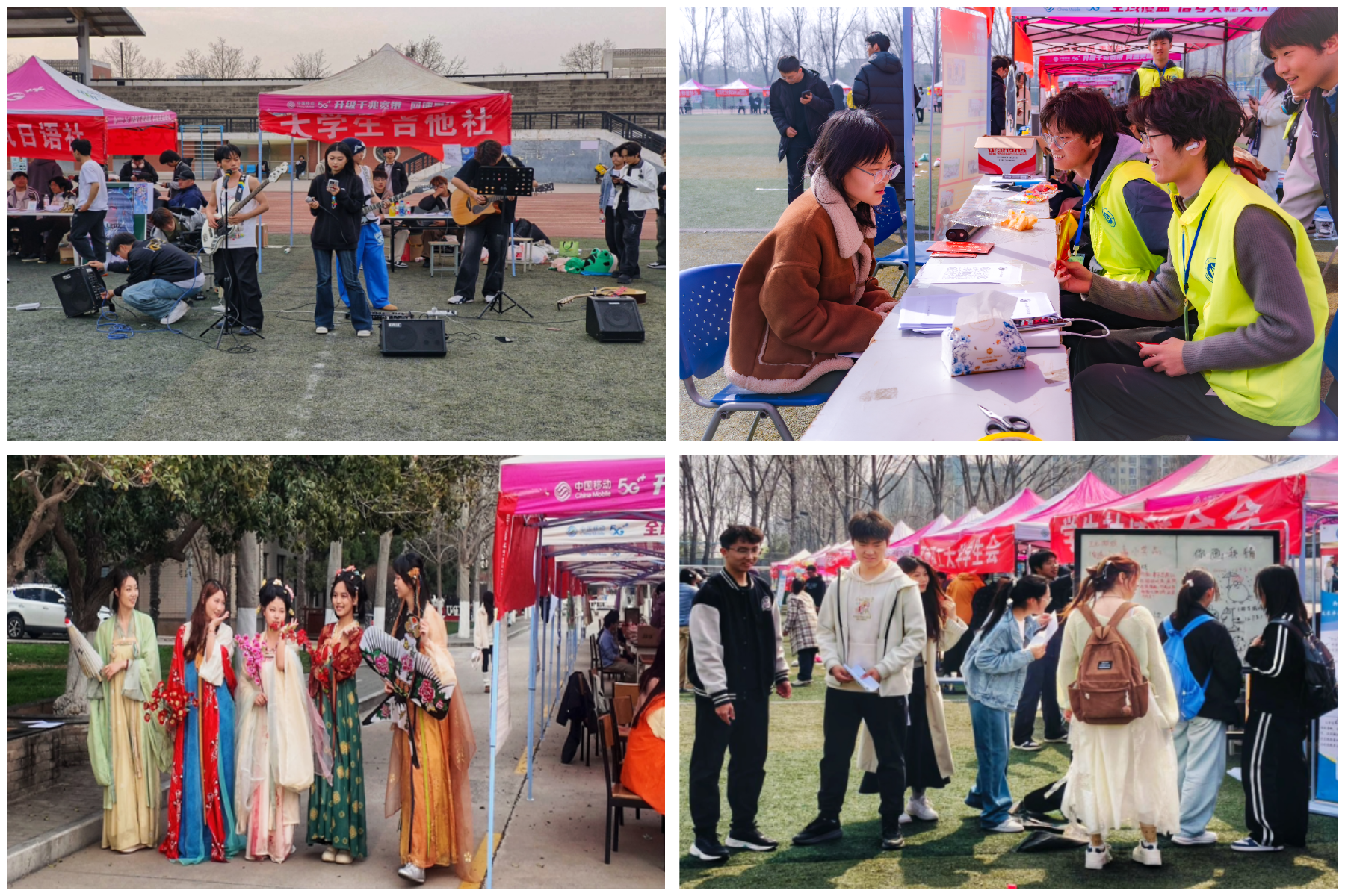 3月21日至22日,由校团委主办、校学生社团联合会承办的2026年春季学生社团招新暨风采展示活动在南、北校区同步举行。全校78个学生社团组织参与招新,五百余名社团骨干及负责人参加现场组织工作,4000余名学生到场参与招新报名与互动。