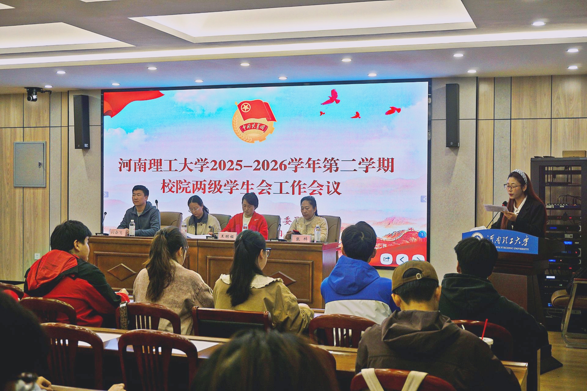 本网讯(冯肖贞 孔钰扬/文 陈秋蓉/图)为统筹推进学生会各项工作,有效提升为学生服务的意识和能力,4月7日下午,河南理工大学2025-2026学年第二学期校院两级学生会工作会议在化工学院507会议室顺利召开。本次会议由化工学院学生会承办,校团委和化工学院团委相关老师、校院两级学生会主席团成员参加会议。