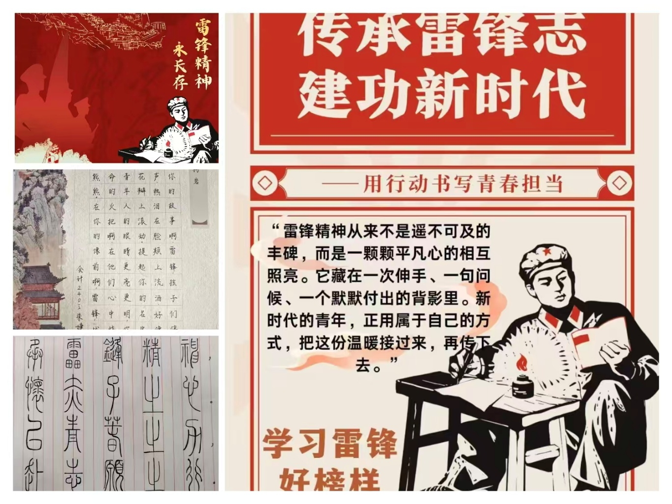 此次活动紧扣雷锋精神与志愿服务内核,设置摄影、书法、手抄报和主题海报等多类创作形式,鼓励同学们用多元艺术语言诠释对雷锋精神的理解。为保障活动有序开展,宣传中心提前谋划部署,建立答疑群及时回应同学们的疑问,细致的组织工作,有效激发乐同学们的参与热情。大家踊跃投稿,用丰富多元的作品传递志愿服务正能量。投稿作品中,既有工整摘抄雷锋日记的书法作品,也有图文并茂、讲述雷锋故事的手抄报,还有定格志愿瞬间、抒发奉献情怀的摄影与海报作品,充分展现了财经学子昂扬向上的精神风貌。后续,活动优秀作品将在财经学院官方QQ账号进行展示,活动为营造积极向上的校园文化氛围注入了青春力量,推动雷锋精神在新时代青年中代代相传。