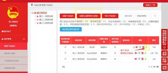 4.为直属下级团组织生成管理员注册码并下发至各直属下级组织。